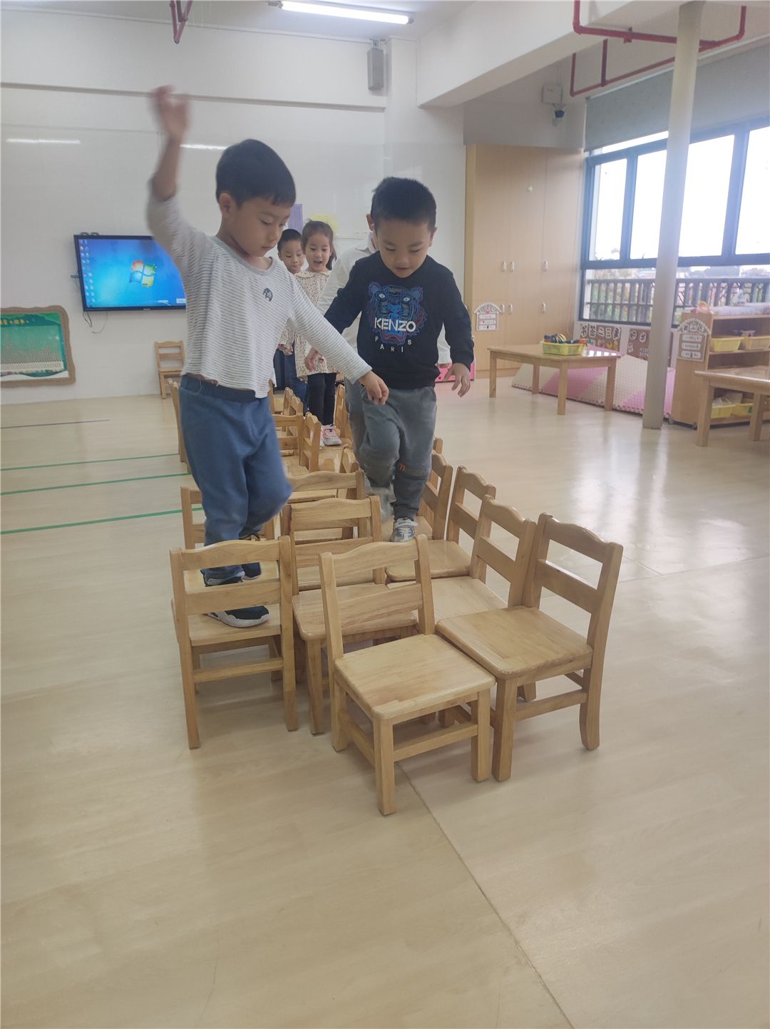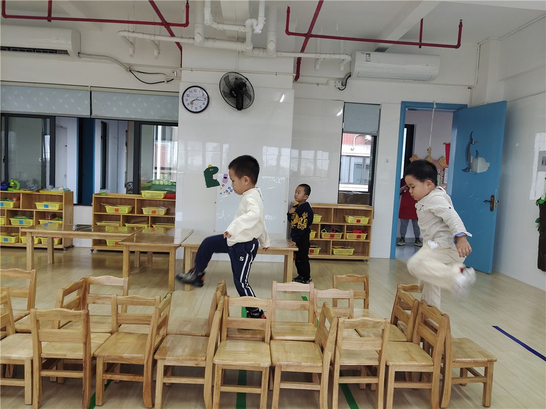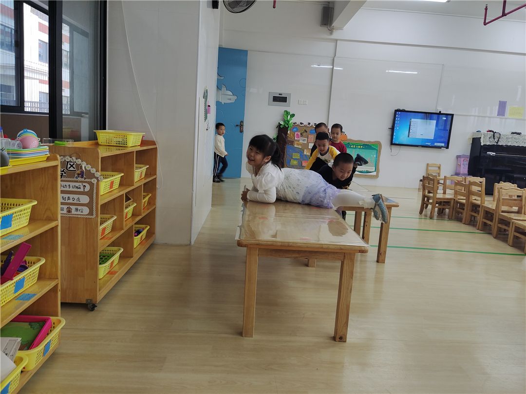 冬季的到来时而伴随着雨天、雾天,为了确保幼儿每天正常开展丰富的体能游戏活动,保证一日的运动量,中九班的萌娃们利用了教室内运动区域的结构及室内运动材料,创设了富有趣味性、挑战性的运动游戏。