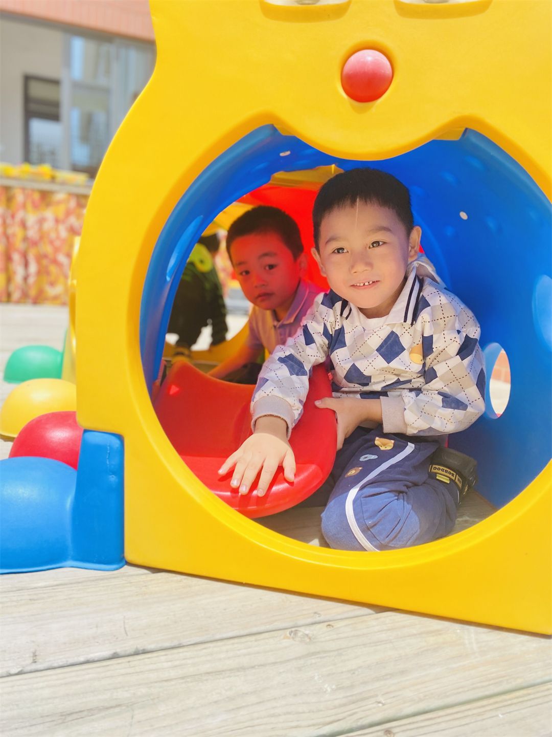 户外活动保证了孩子们基本的体育锻炼,让孩子们的身体素质可以一直棒棒哒!看,小九班孩子们玩的多开心~