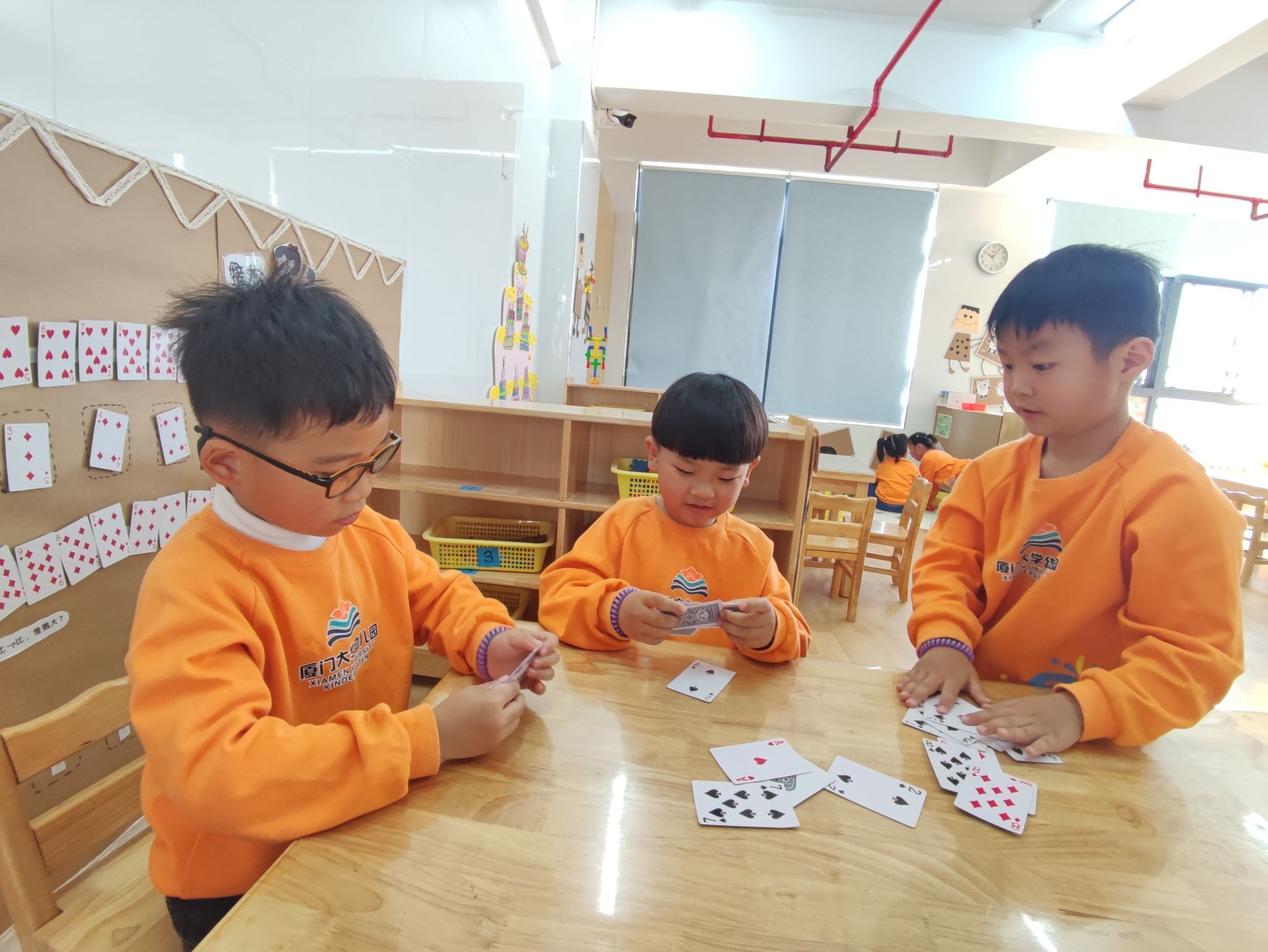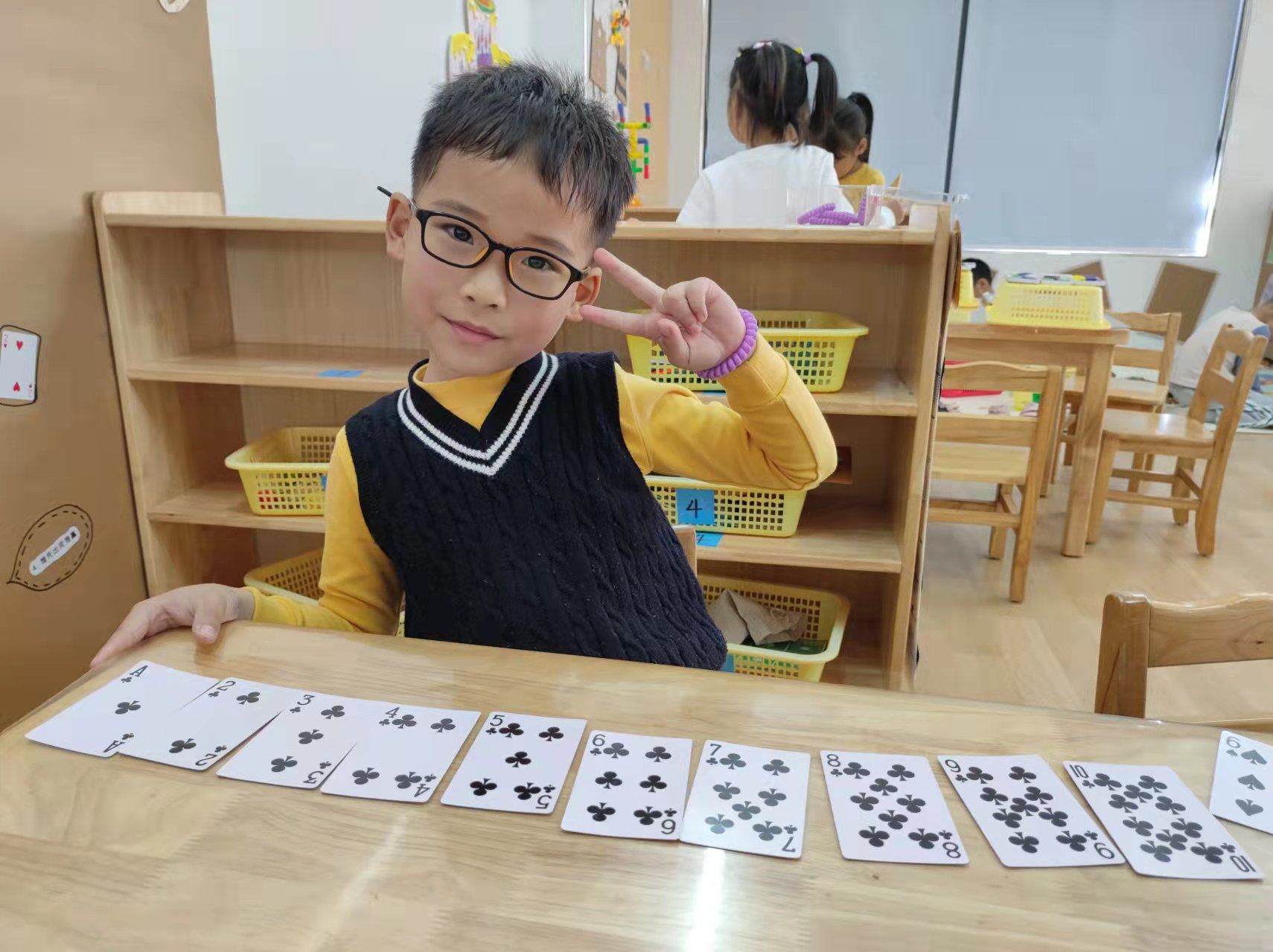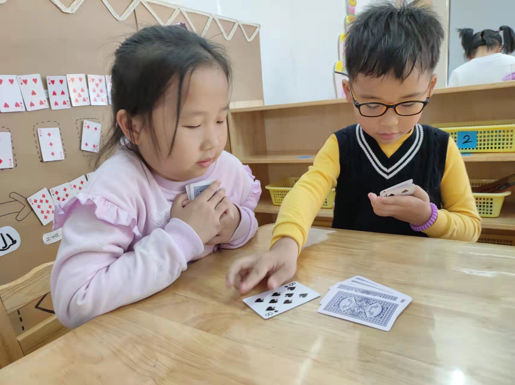 最爱的区域时间到了!孩子们玩起了扑克牌,有的比大小,有的数字接龙......