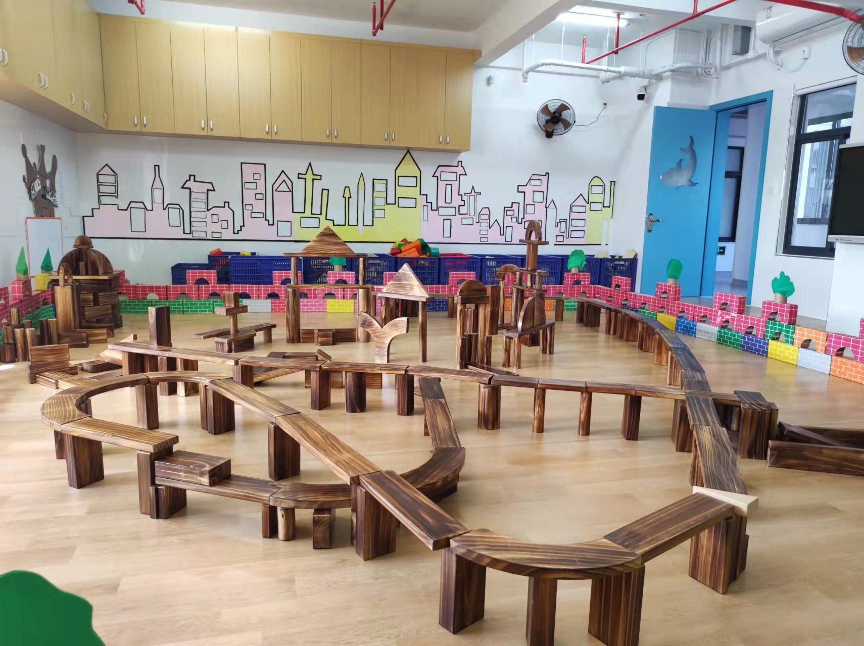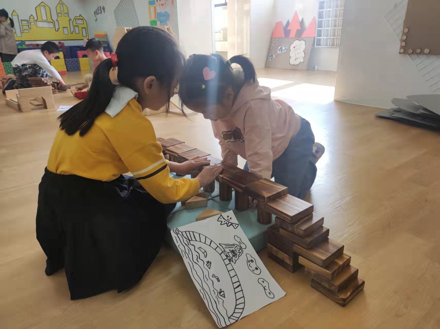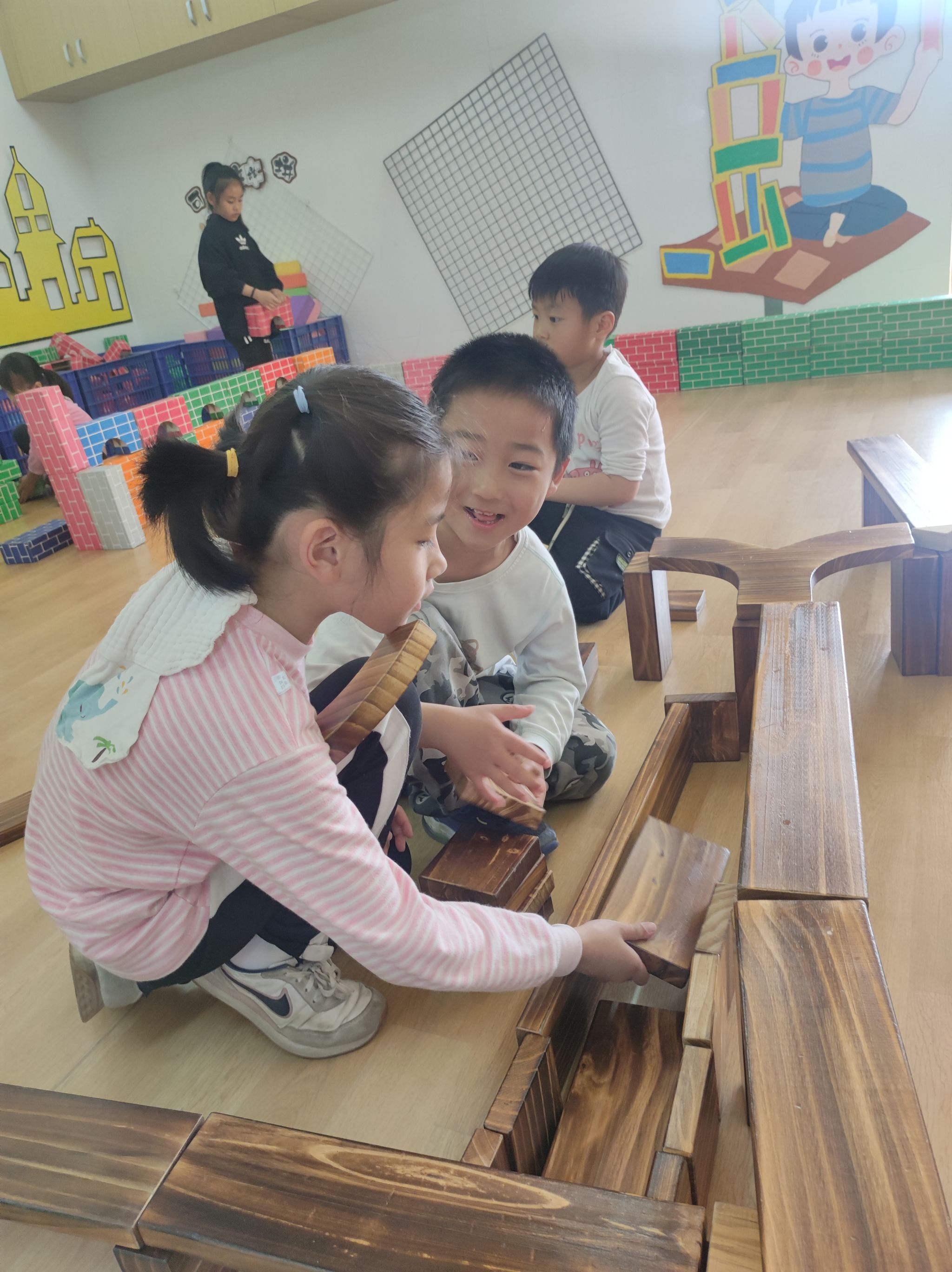 咦!孩子们在做什么呢?噢,原来在自主设计,互相讨论并合作,完成了搭建小游戏,点赞吧!