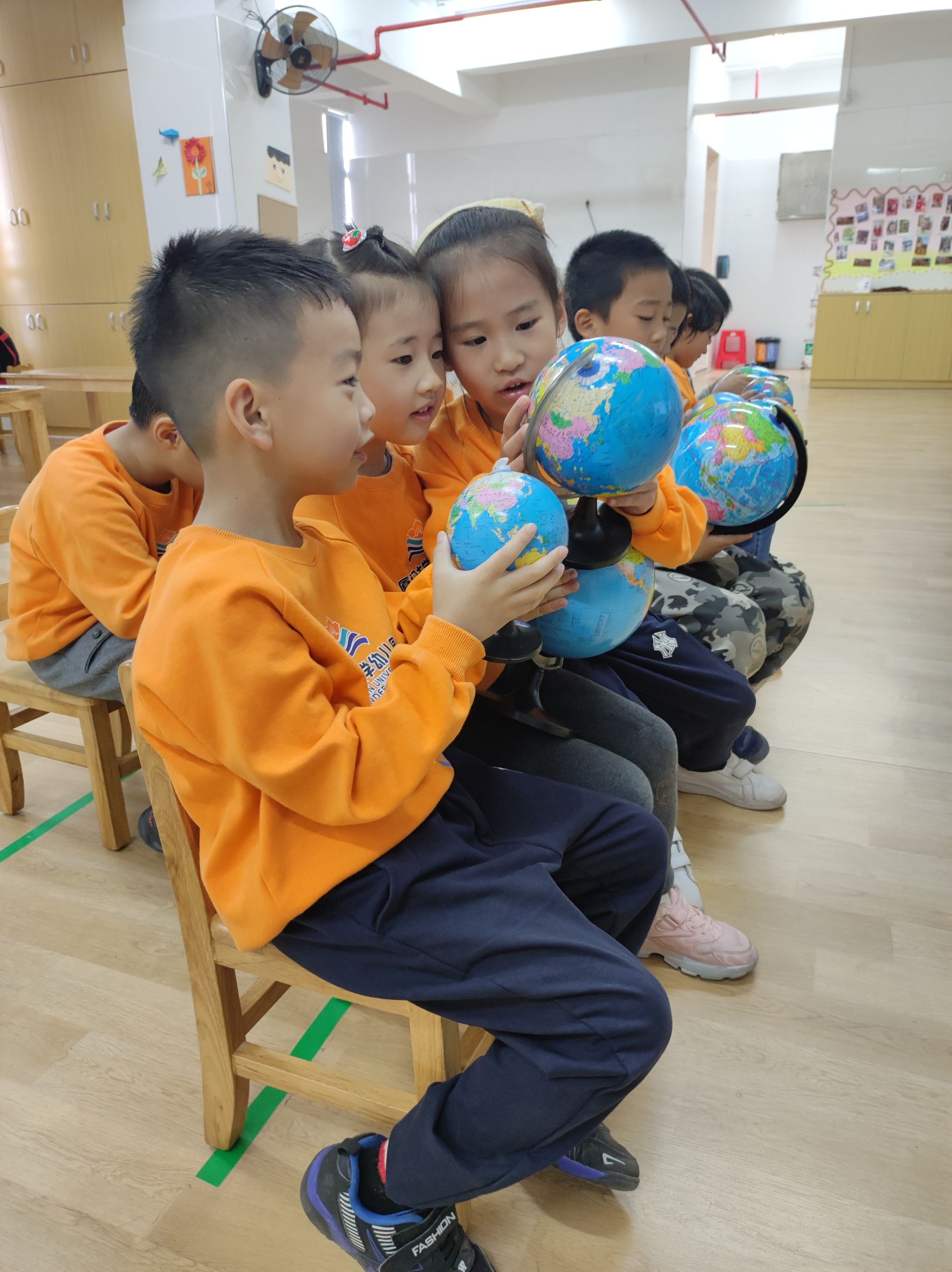 有趣探秘课程即将开始,孩子们认真的观察地球仪,分享着自己发现的小奥秘。