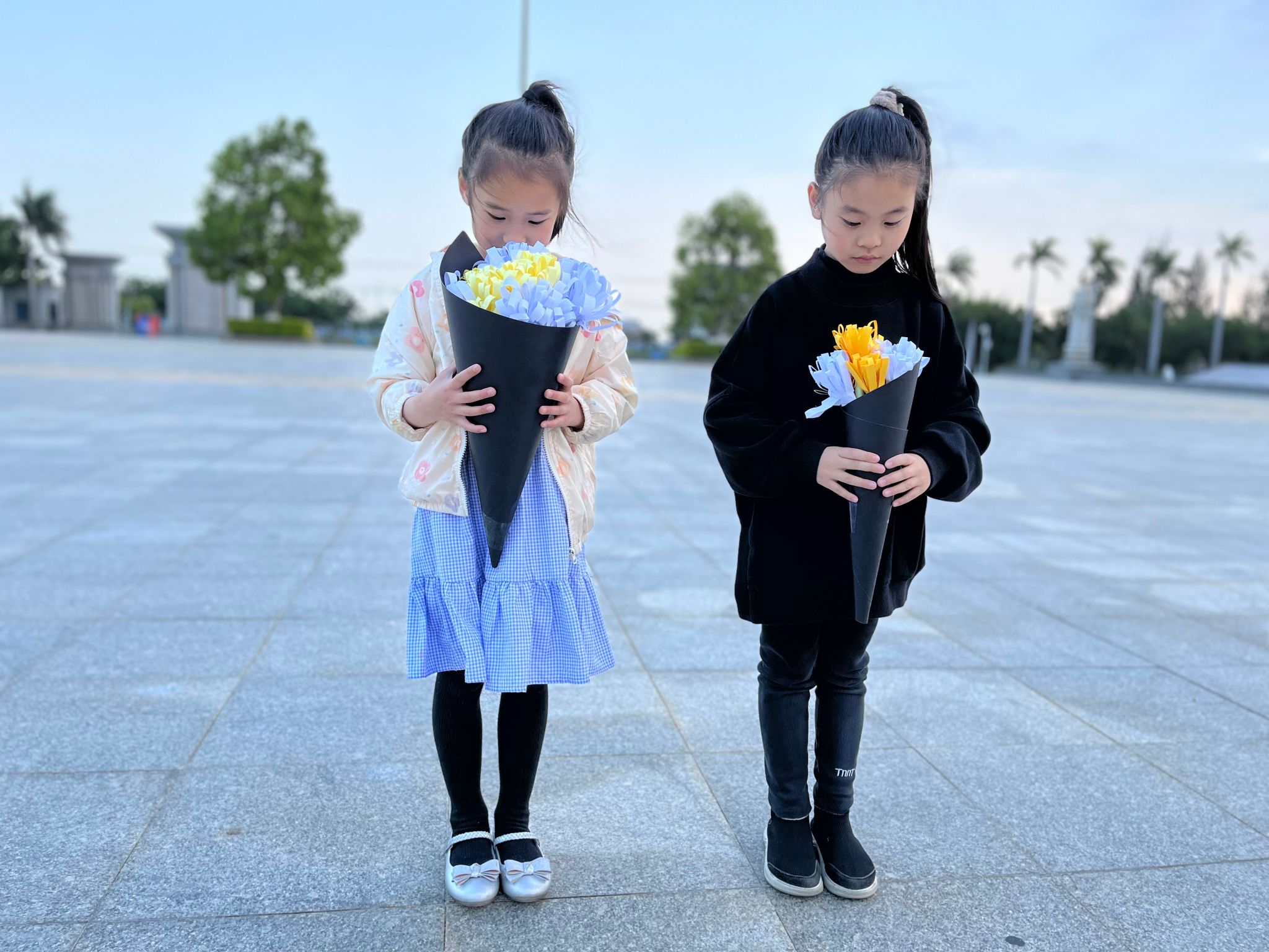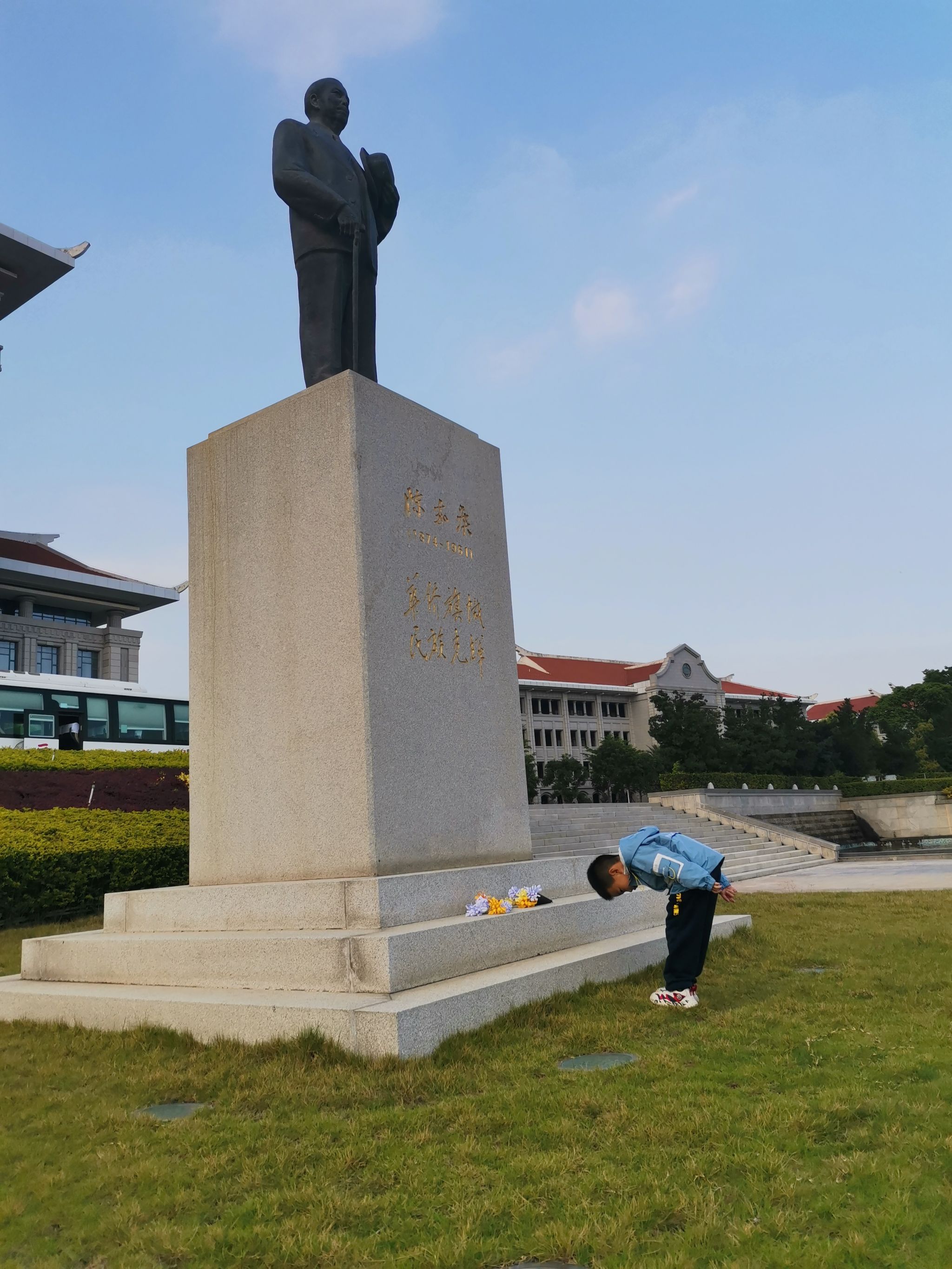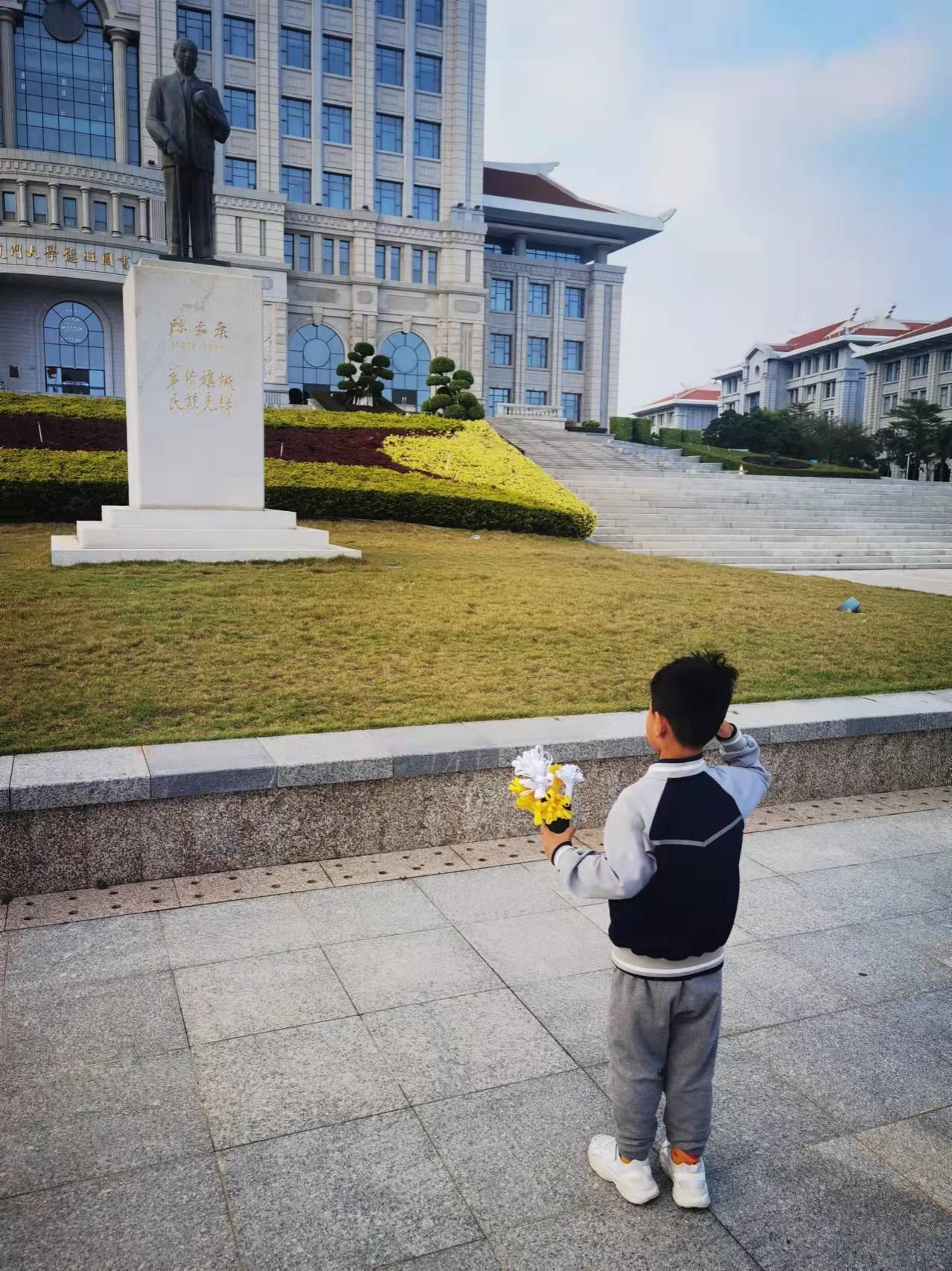 正值清明时节,伴随着“清明寄相思,折花遥相祭”相关活动开展,孩子们折一束花来到校主陈嘉庚铜像前进行祭扫,寄托哀思。