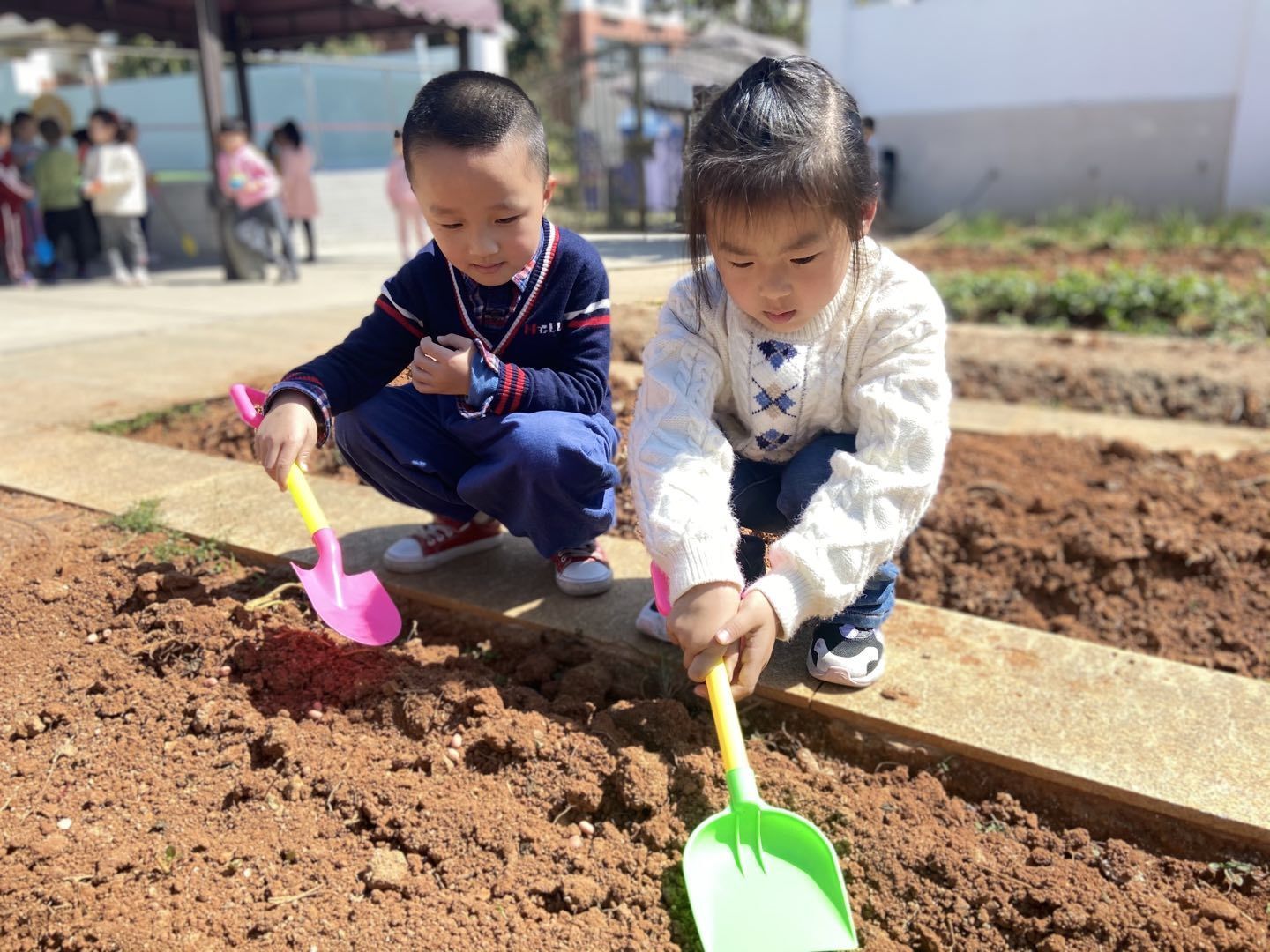 春天是播种的季节,是希望的象征。一年之计在于春,趁着春光正好,萌娃们热情高涨,纷纷拿起小铁锹种下一颗颗种子,播种一个个希望,用爱浇灌着它们,期待绿芽快快绽放生命的奇迹。