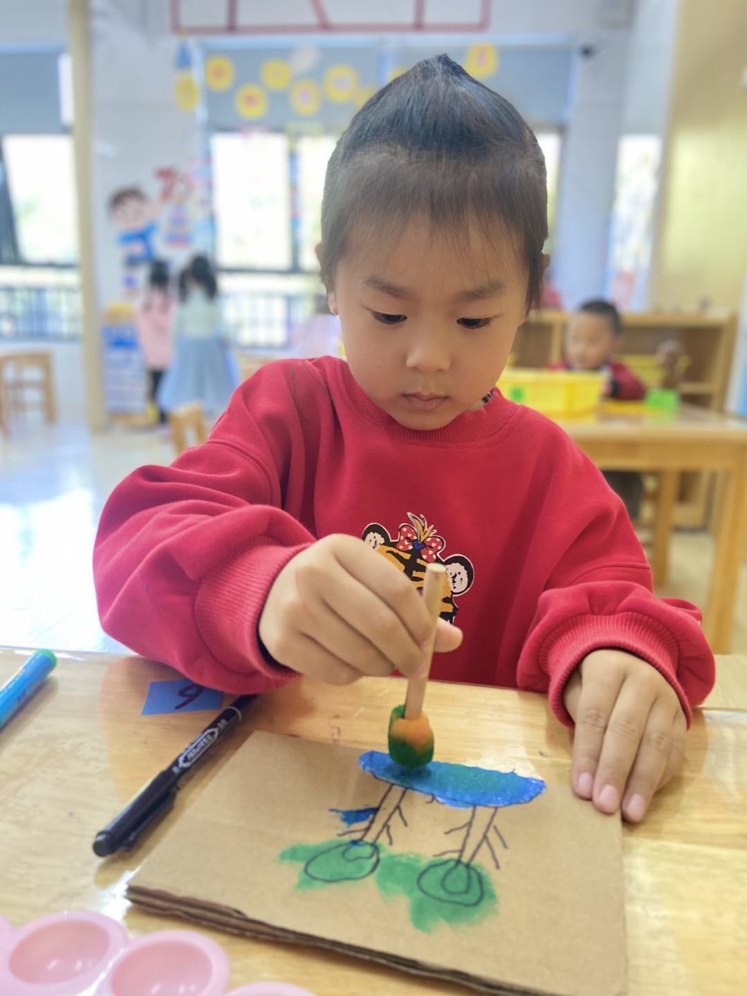 春回大地万物苏,植树添绿正当时,一年一度的“植树节”如期而至,萌娃们用灵巧的小手在纸板上挥舞,用实际行动来宣传环保意识,为保护环境贡献自己的一份力。