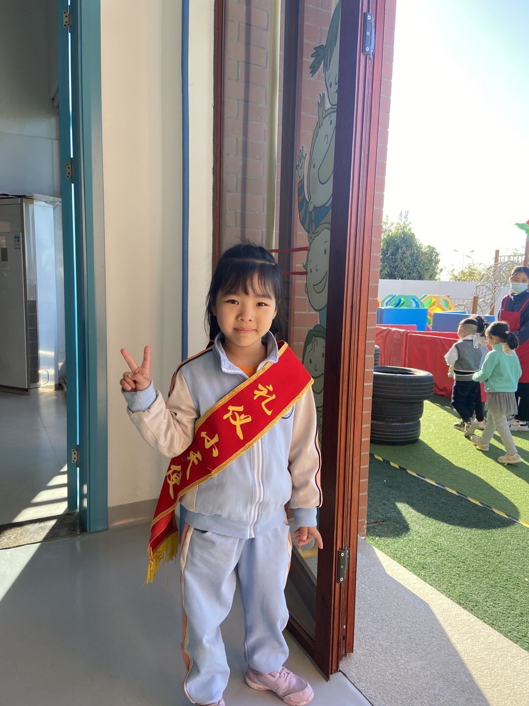文明礼貌是我们的名片。当清晨的第一缕阳光升起,“礼仪小天使们”自信地站在自己的“工作岗位”上,热情、大方的以笑脸迎接每一位来园的小伙伴,一句稚嫩、清脆的“早上好”,温暖了大家的心。