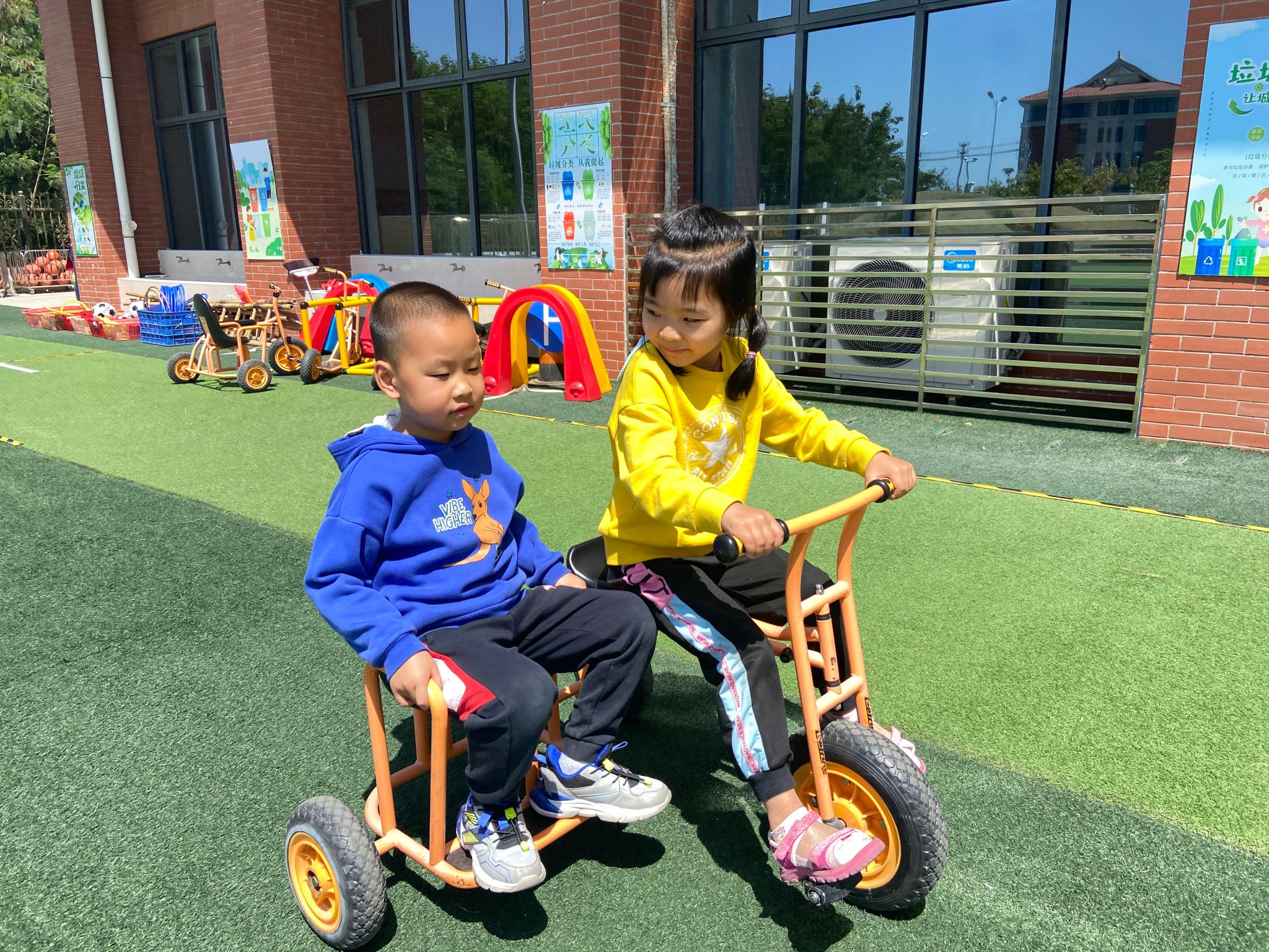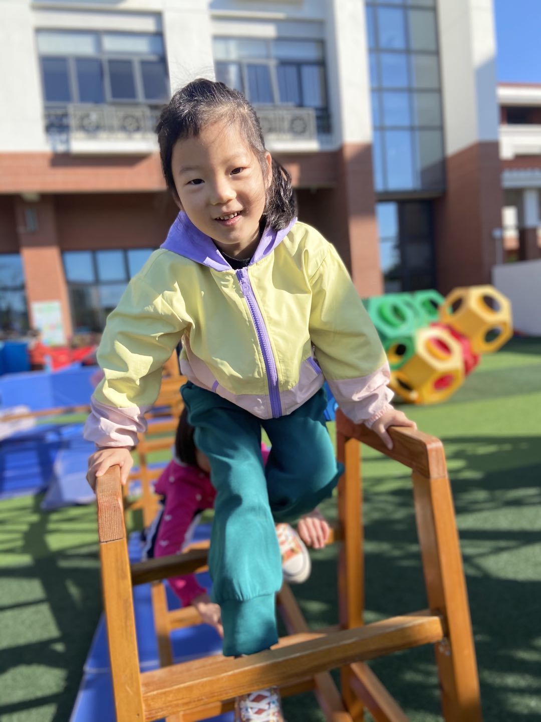 “天蓝蓝,白云飘,一起做游戏……”瞧!又到了萌娃们最喜欢的户外活动时间啦!操场上到处都是他们可爱的身影,在和煦的阳光下奔跑着,微笑着,玩得不亦乐乎,尽情享受着大自然的新鲜空气,在自由快乐的锻炼中茁壮成长。