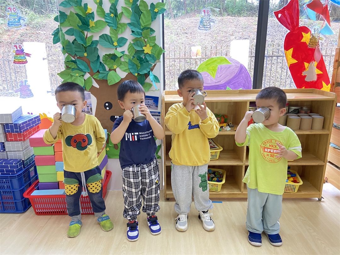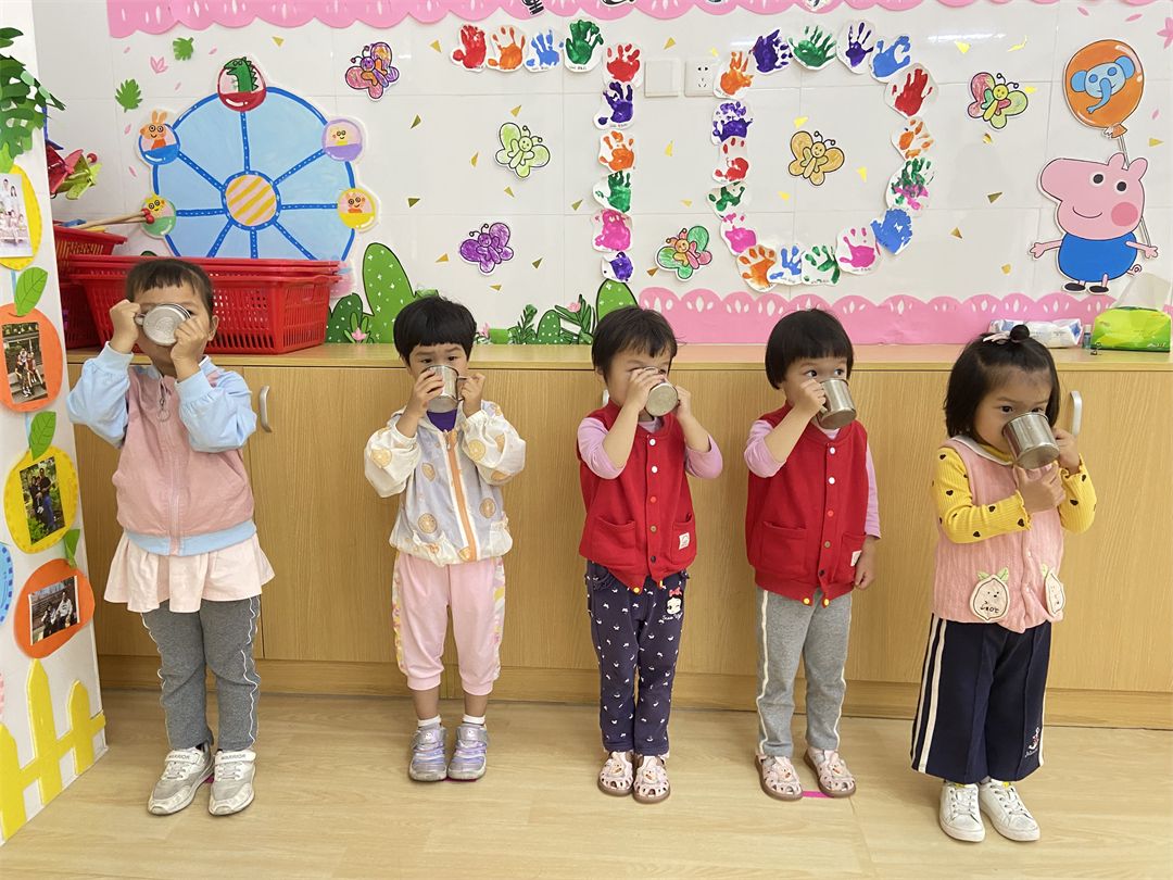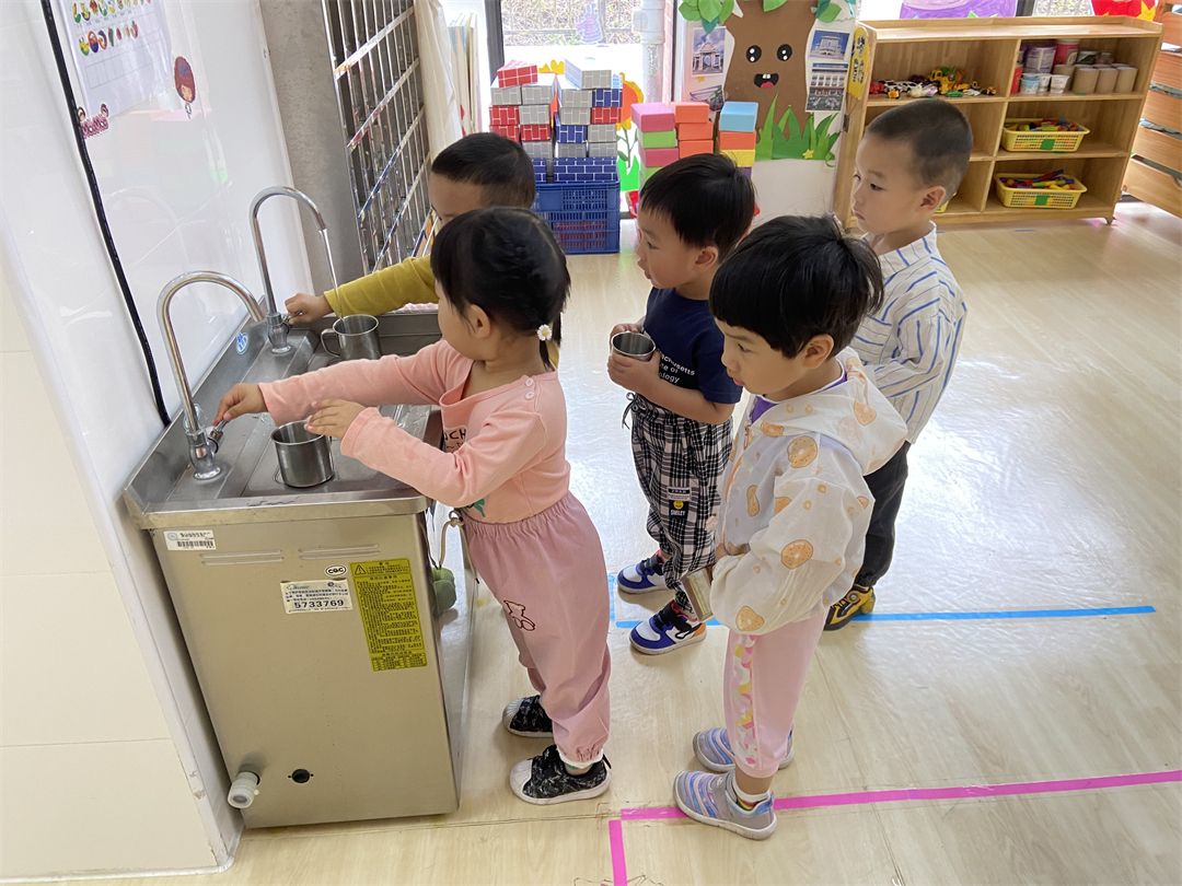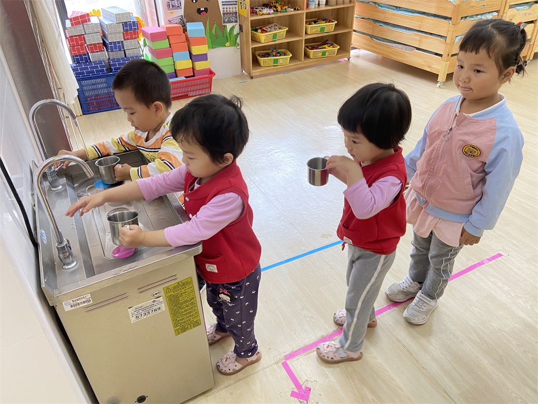 到班级里,宝贝们非常有序地将自己的擦手巾挂起来,拿起自己的小水杯排队装开水喝,棒棒哒!