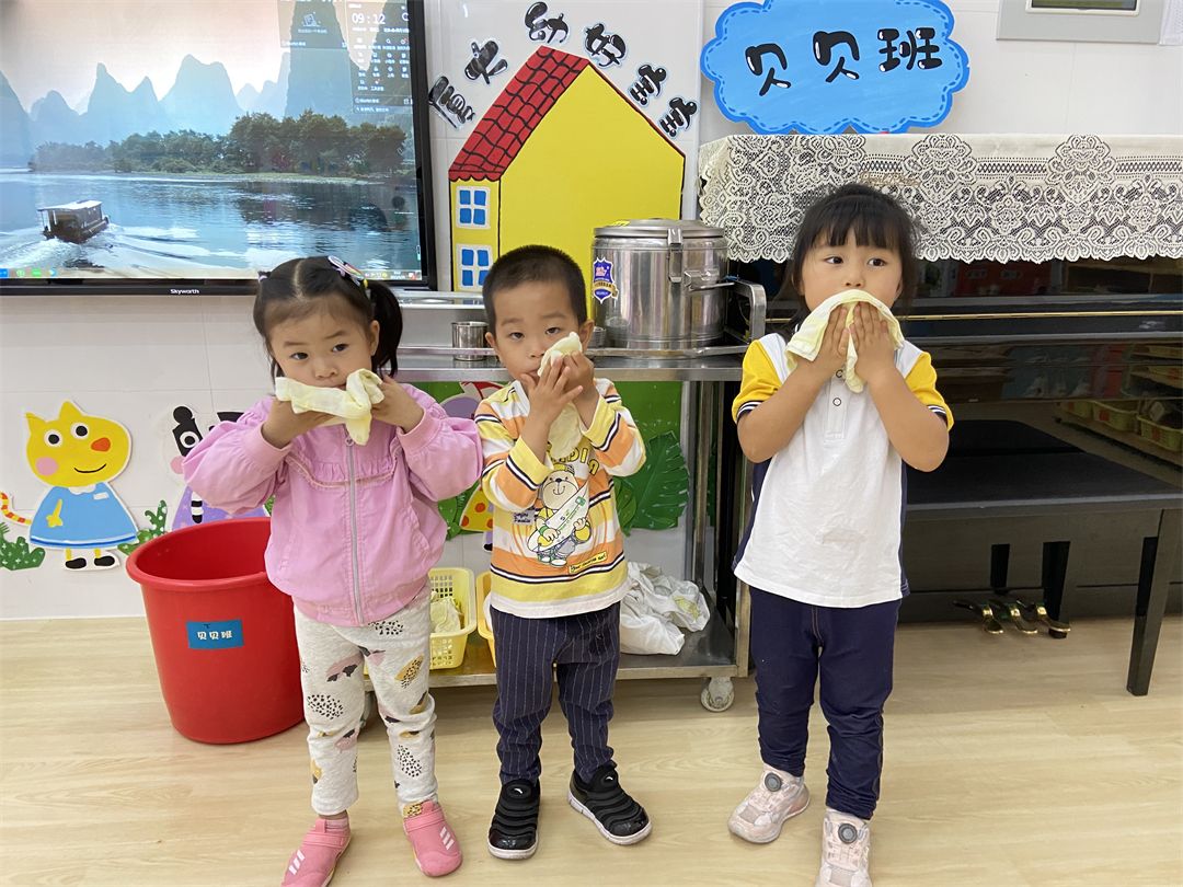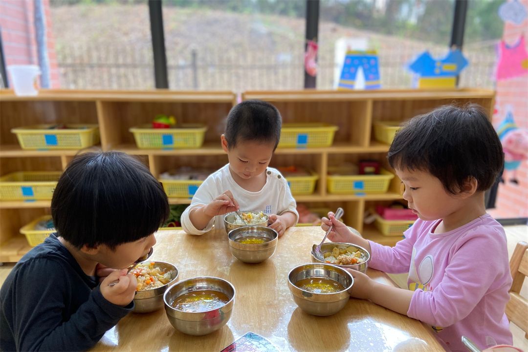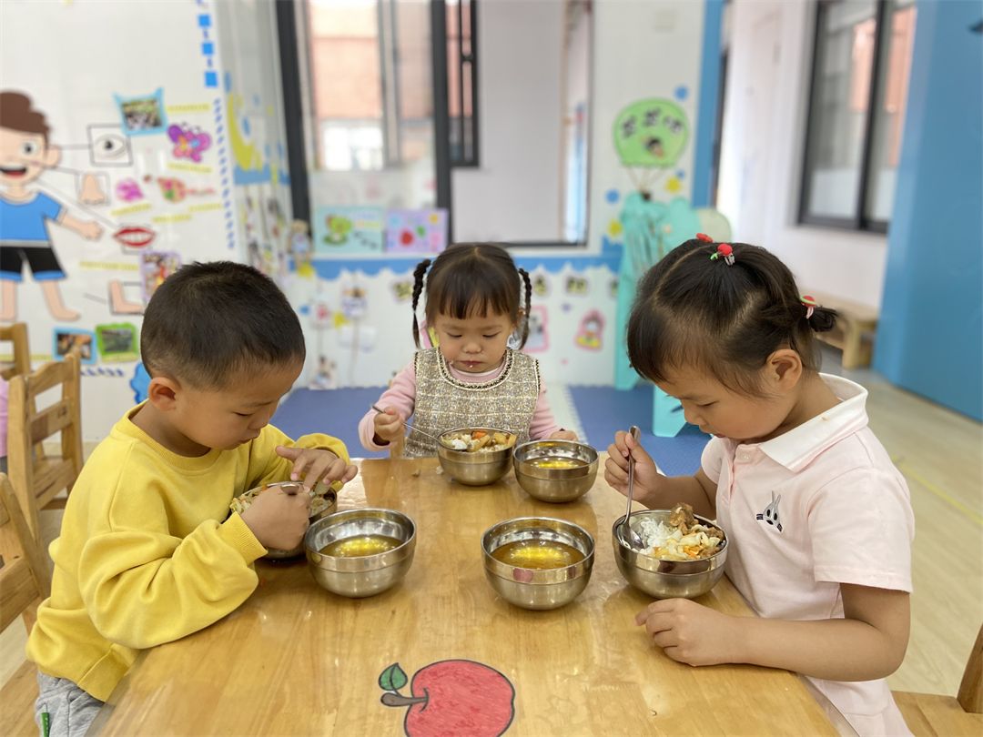 吃饭时,宝贝们都会自己动手吃饭,非常的能干哦!
