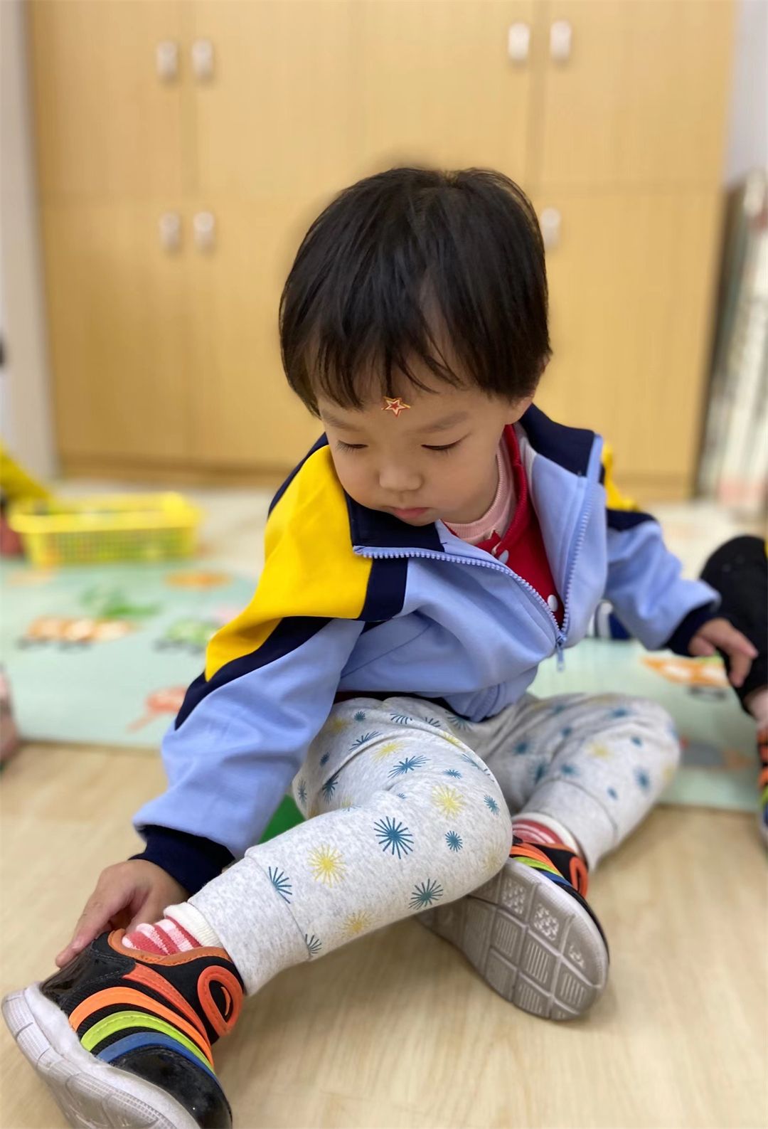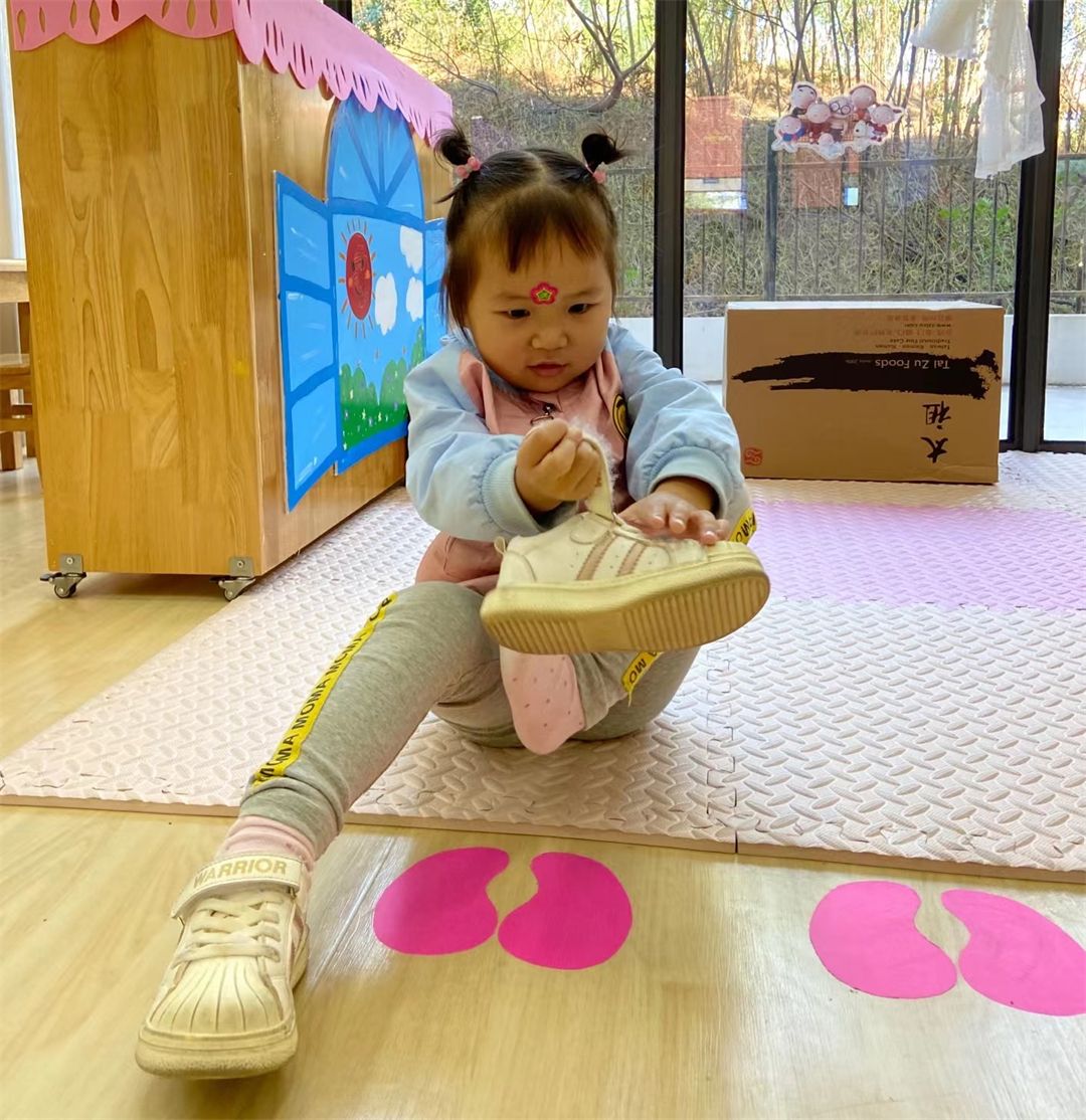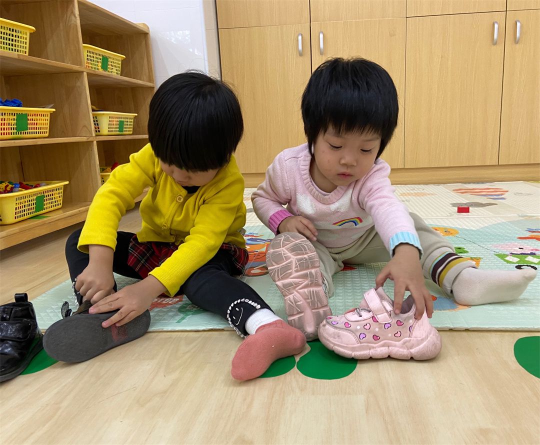 “瞧,还会自己穿鞋子了,多棒啊!”