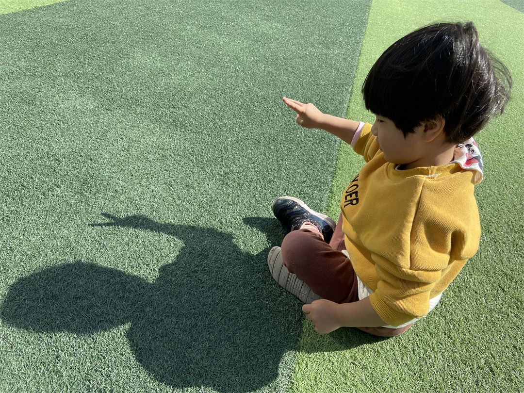 户外活动时,宝贝们发现地上的影子特别有趣,通过简单的引导,大胆想象,创作出很多有趣的影子~~