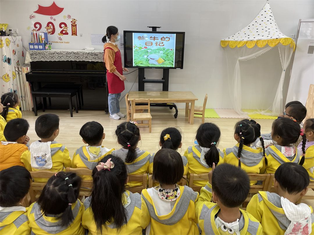 追随孩子们浓厚的兴趣,我们一起阅读了绘本《蜗牛的日记》,在充满童趣的日记里,孩子们了解到蜗牛的生活及特点,学习了蜗牛乐观坚强的精神。“小蜗牛可真棒呀!”“小蜗牛真可爱。”阅读完孩子们纷纷发出感叹。
