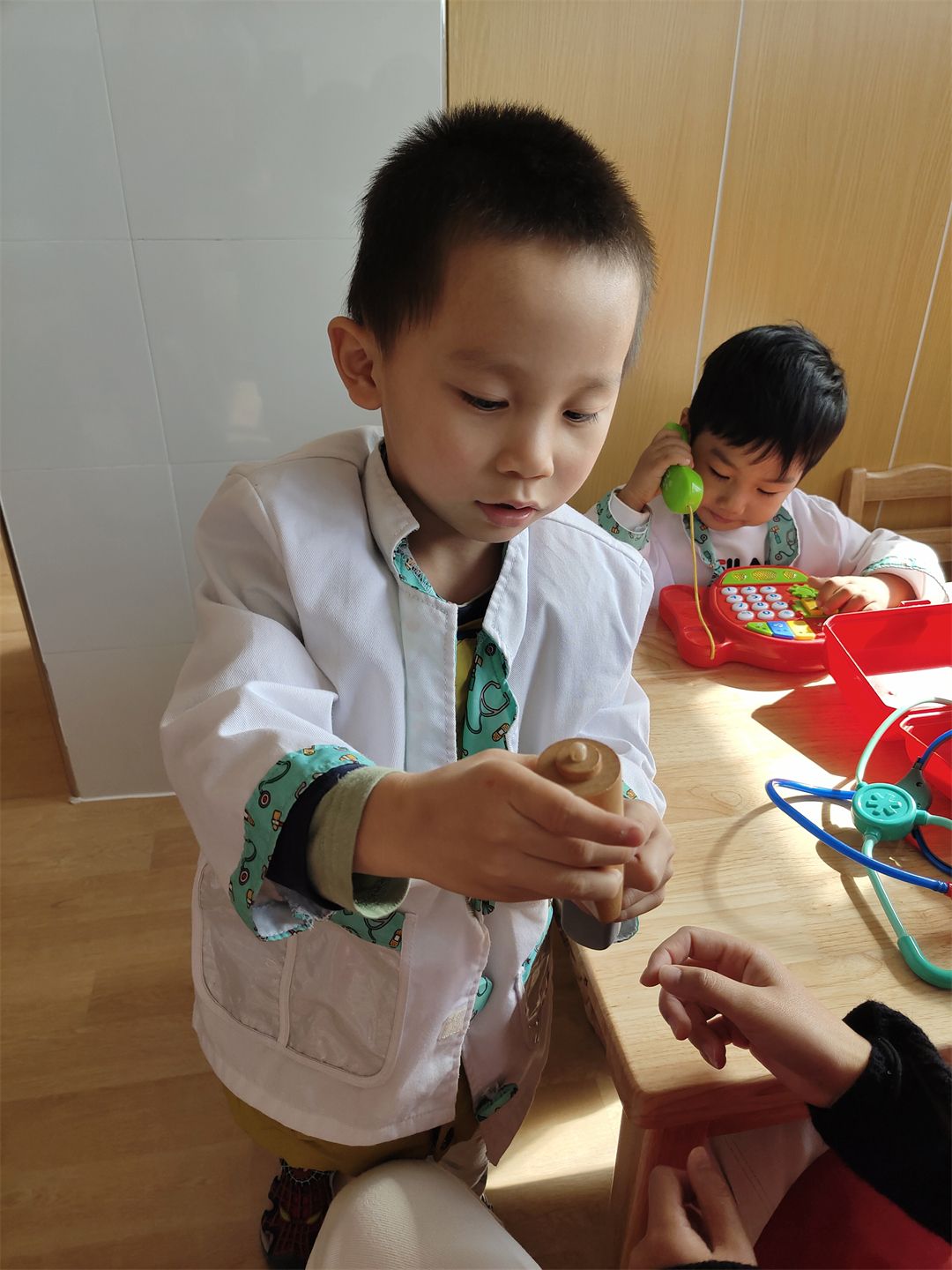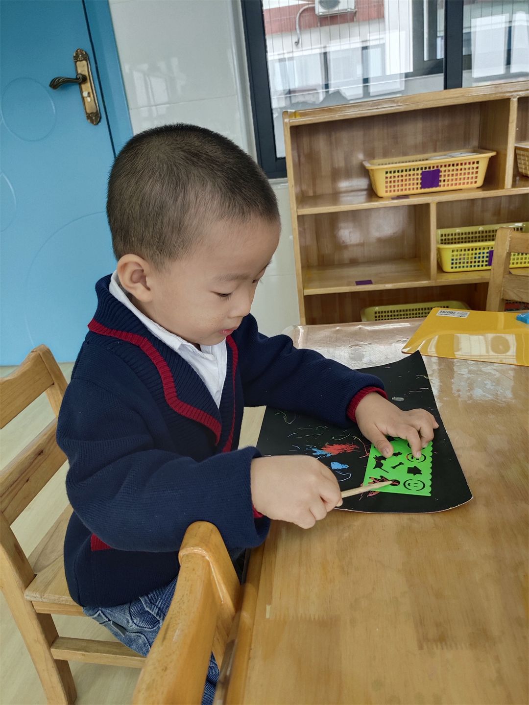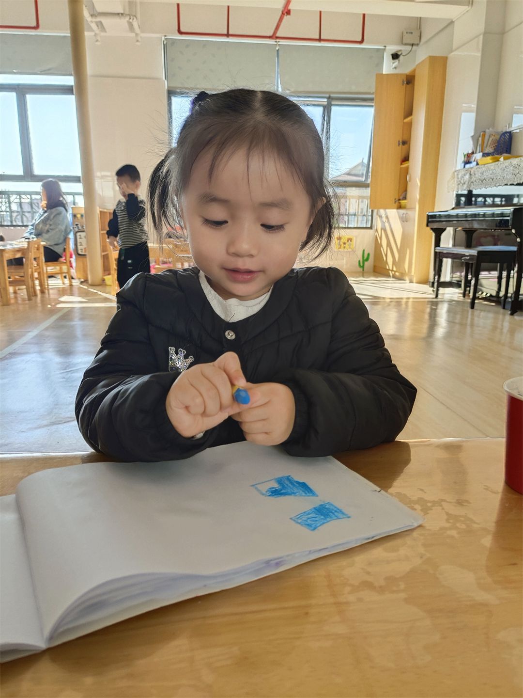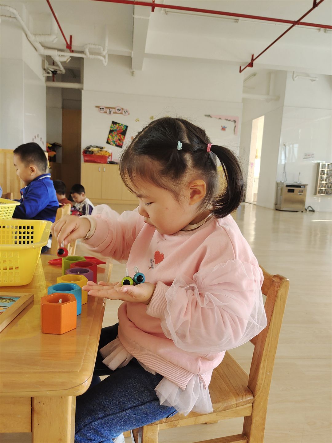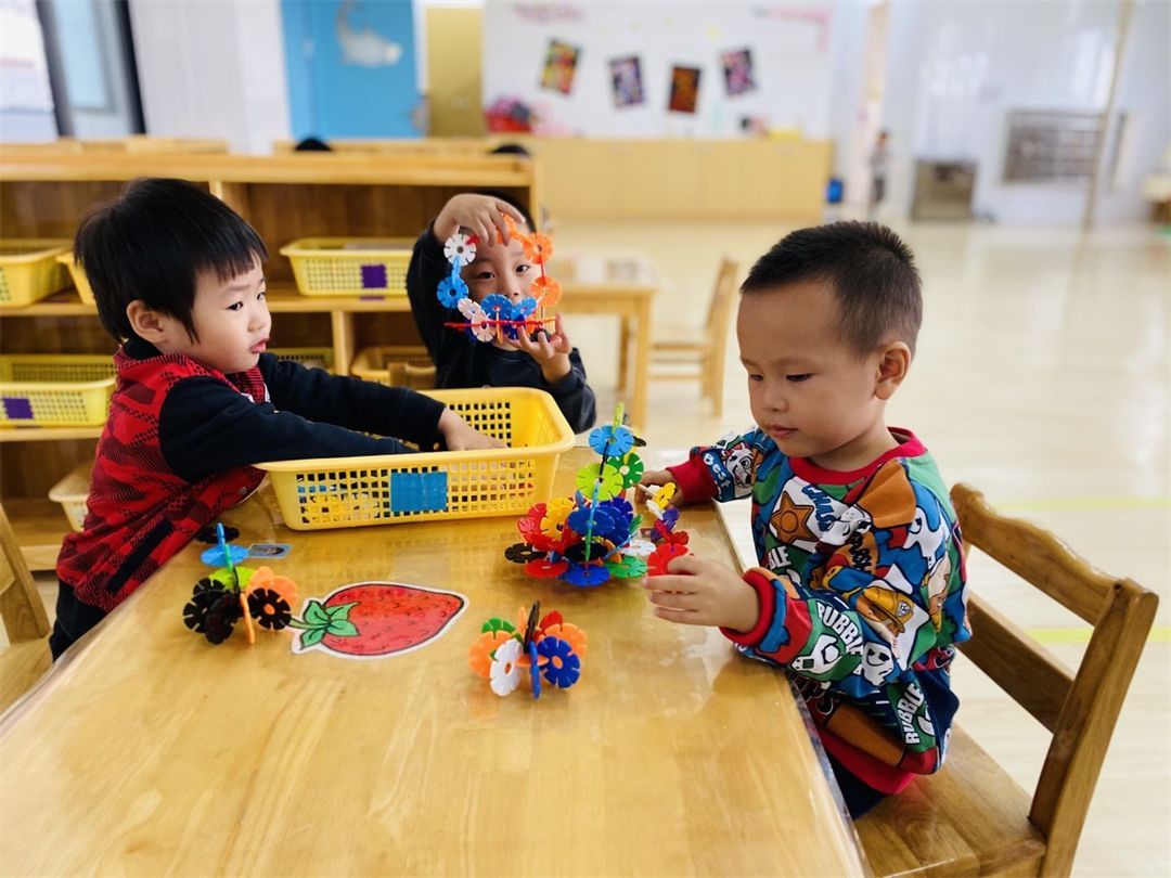 “快看,我们在拼花篮呢!”