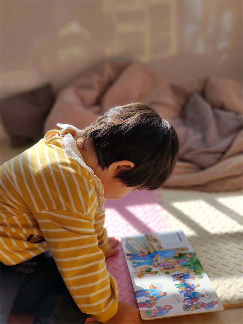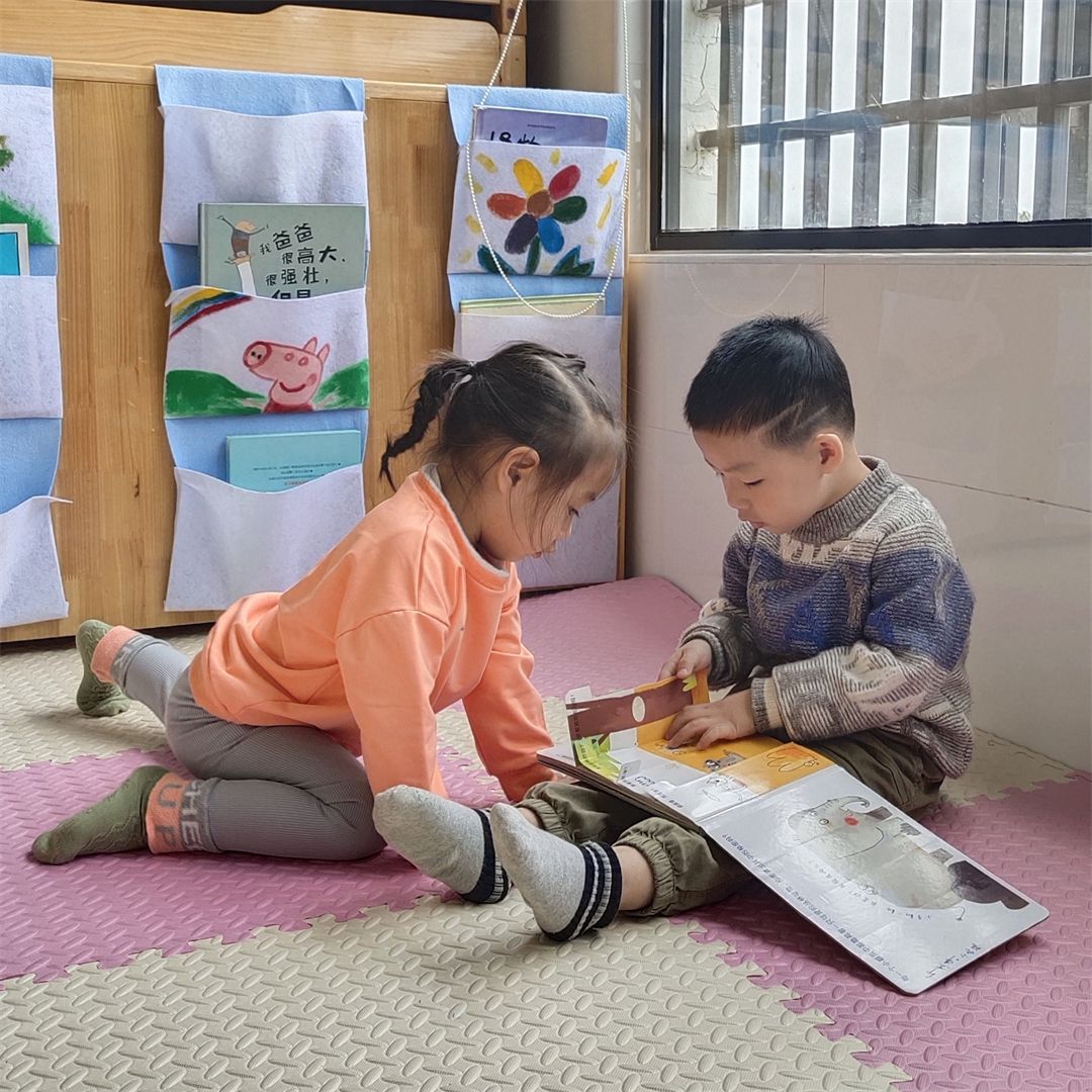 嘘……请轻声交流噢,宝贝们在安安静静地看书呢!