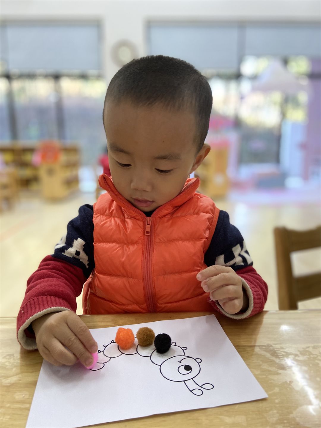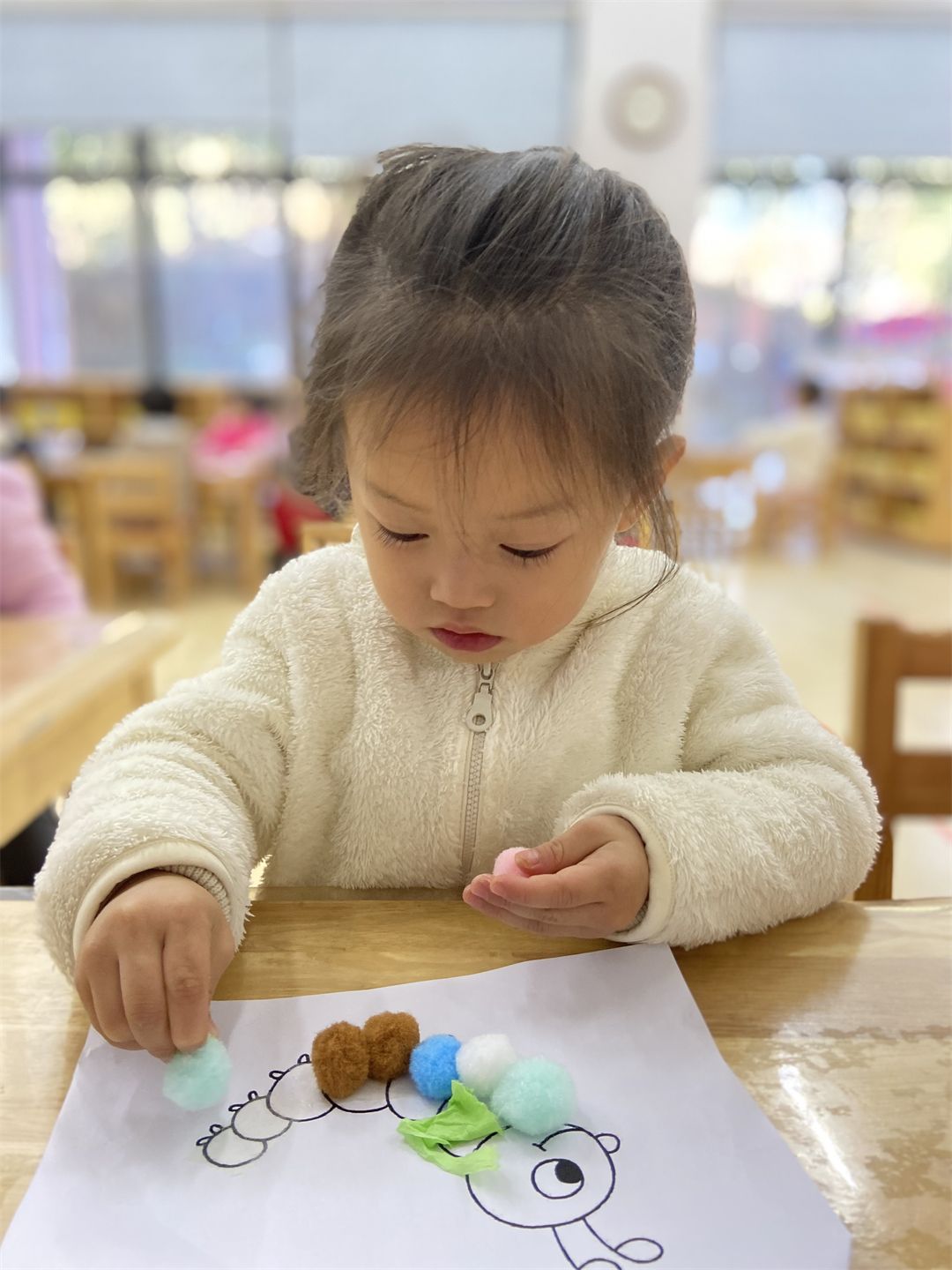 “穿上毛毛球衣服,毛毛虫就不会冷了”