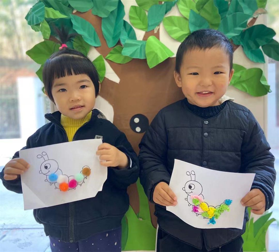 宝贝们通过自然界的探索、观察,有了很多自己的想法,看,他们用自己的小手变化出各种各样的毛毛虫~