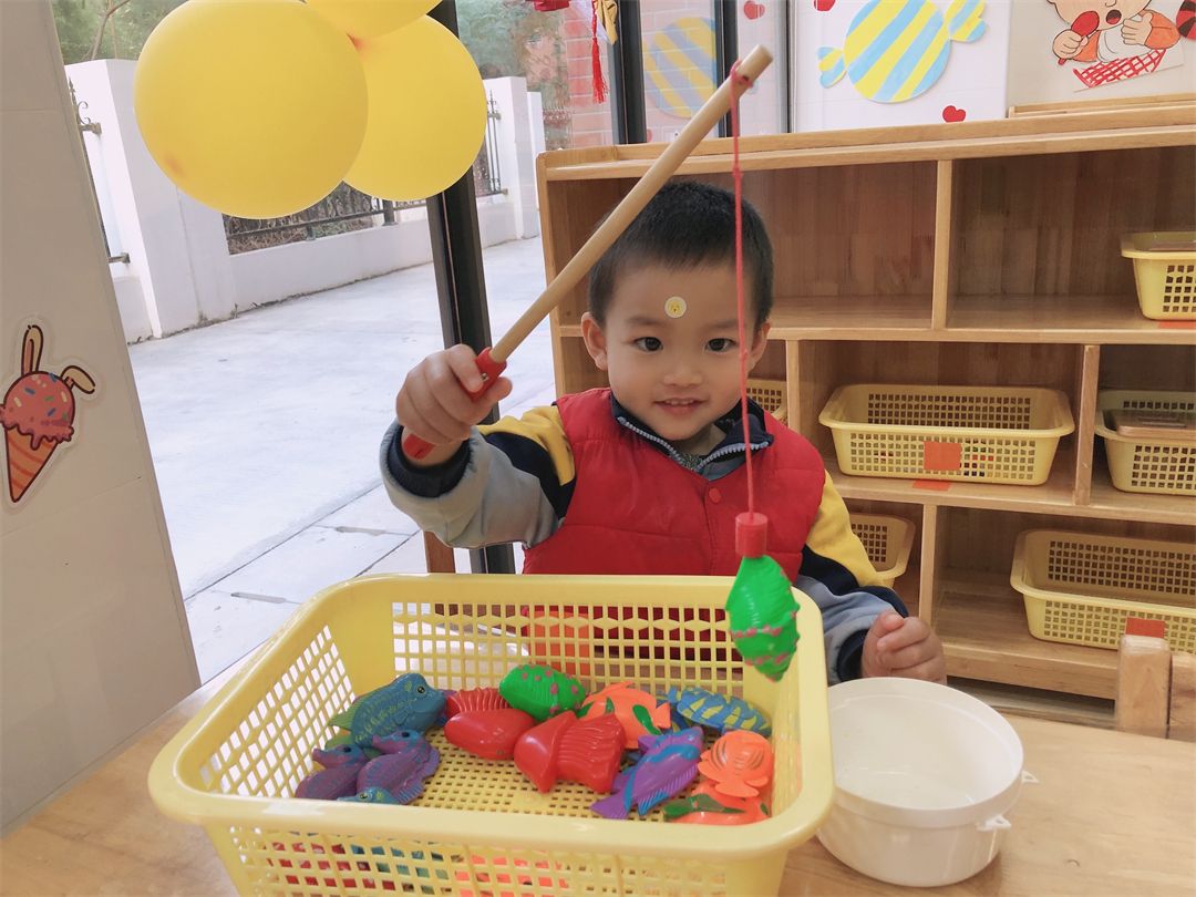 “哇——好可爱的小鱼呀!”它的小嘴巴是牢牢地咬着鱼饵呢。“你好呀!小金鱼,你是我的午餐啦!”