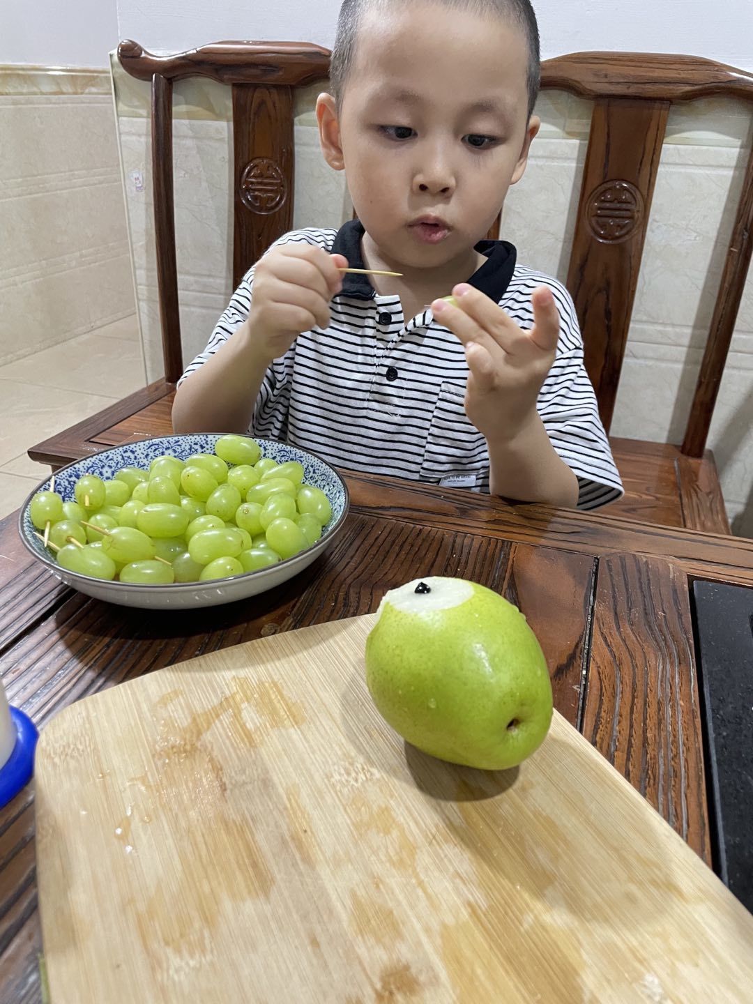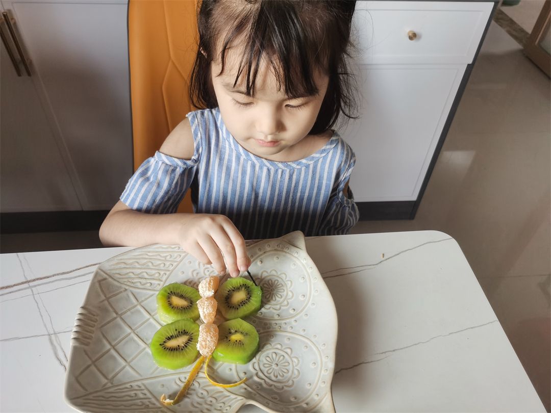 接下来小朋友们开始去皮,切块,扦插,摆盘。