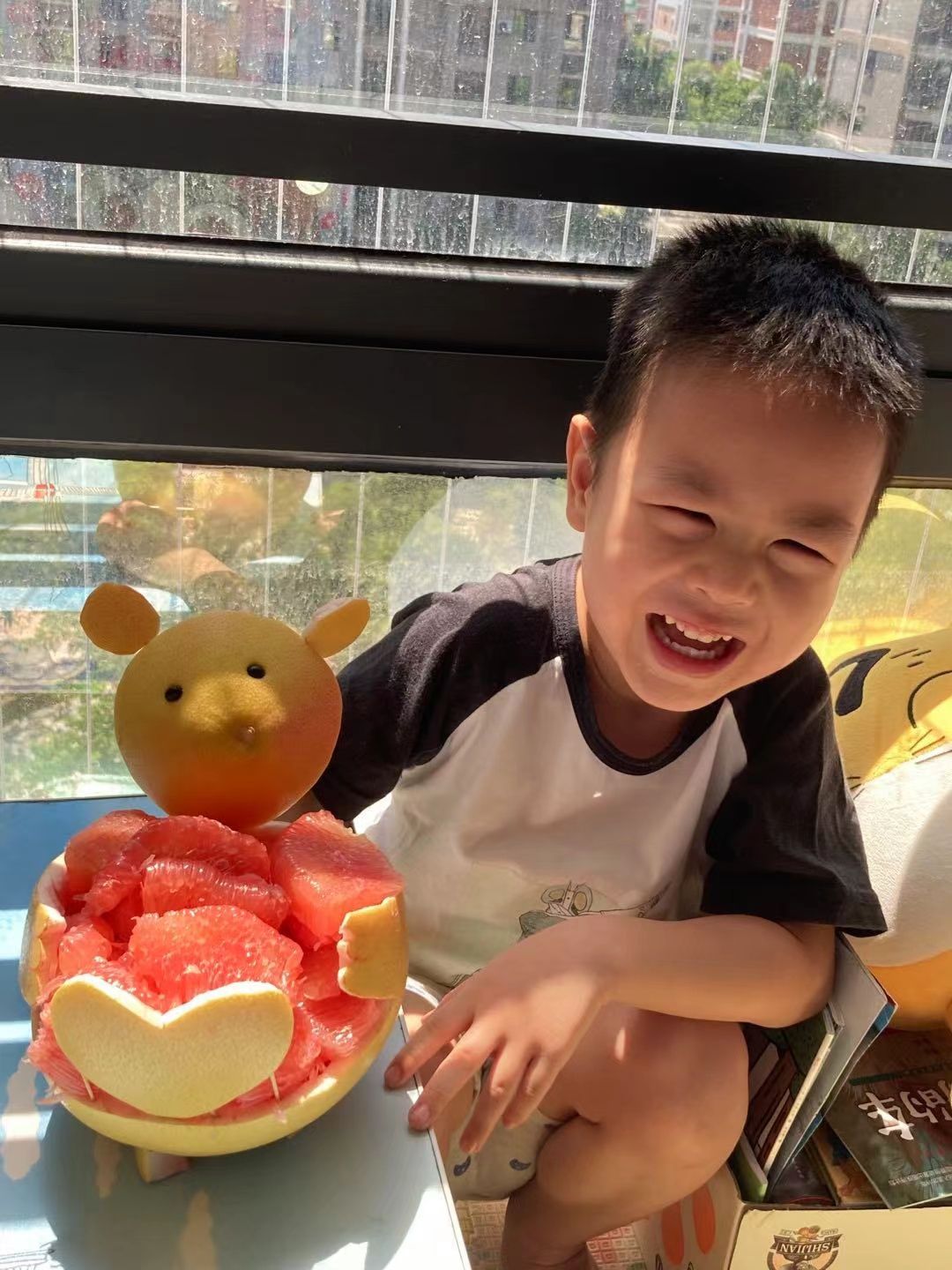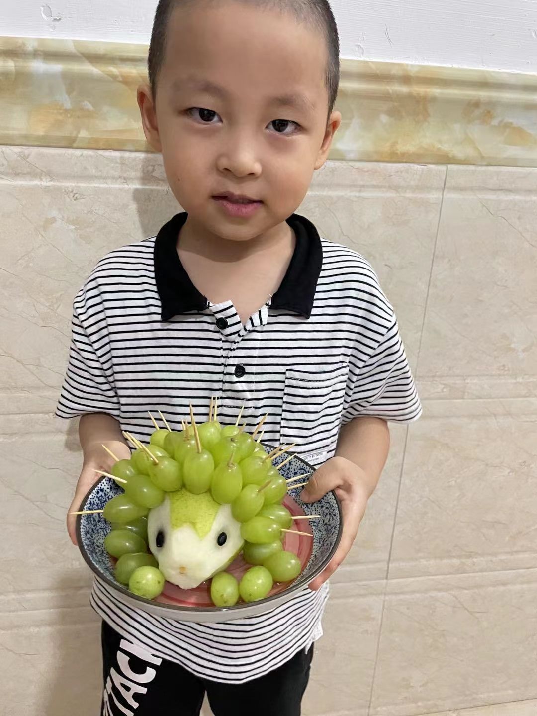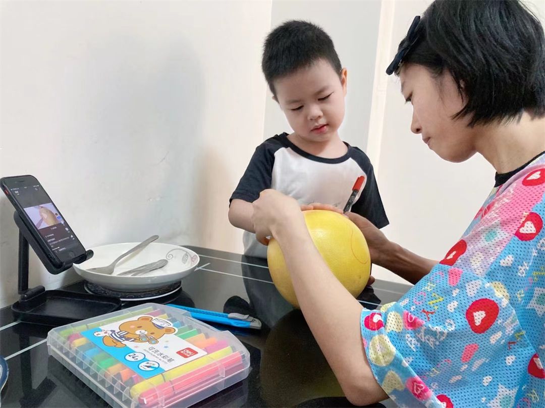 除了这些小朋友们还想出了别样的水果拼盘制作方法,有的用绘画的形式。