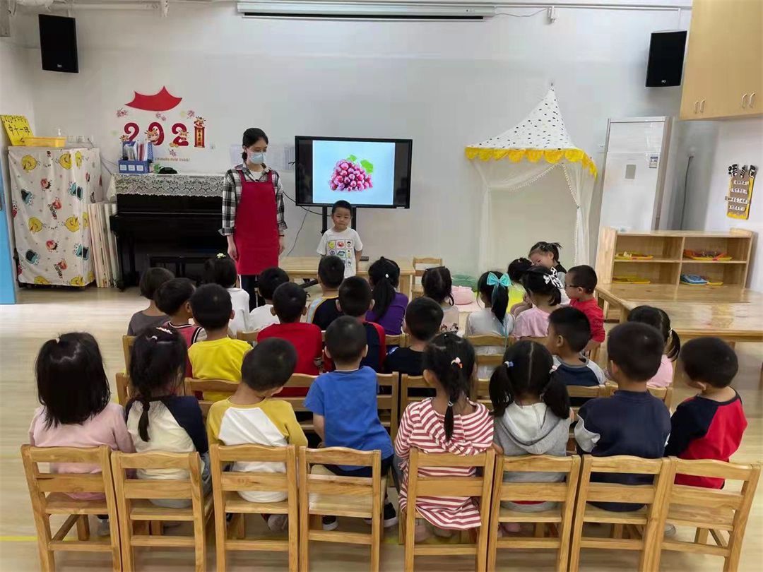通过观察秋天的图片,小朋友们初步认识了秋天的景象和秋天的水果。小朋友们还化身为小诗人,创编了一首关于秋天的小诗歌。让我们一起来听一听吧!“红色的苹果,黄色的柚子,紫色的葡萄,秋风娃娃吹进了果园,翻着美丽的画册。”