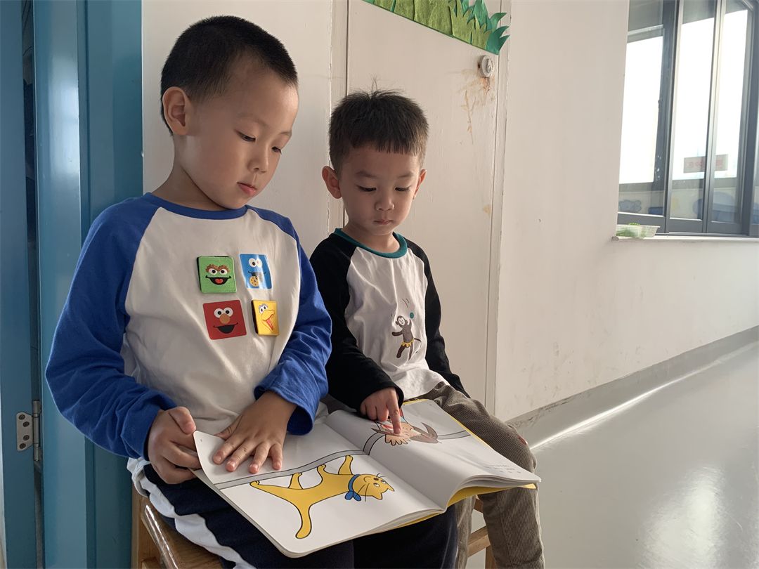 我安静地陪着弟弟妹妹翻书、看图画,一边告诉他们要怎么翻书。