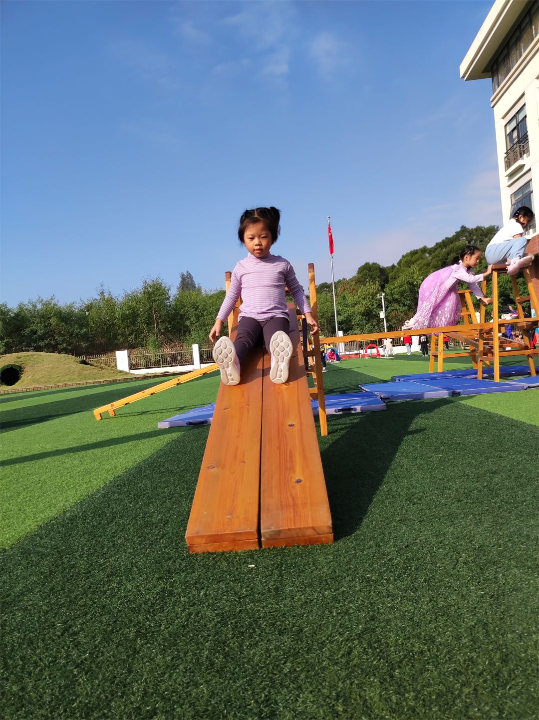 除了安吉游戏外,孩子们还有很多趣味十足的小器械游戏。