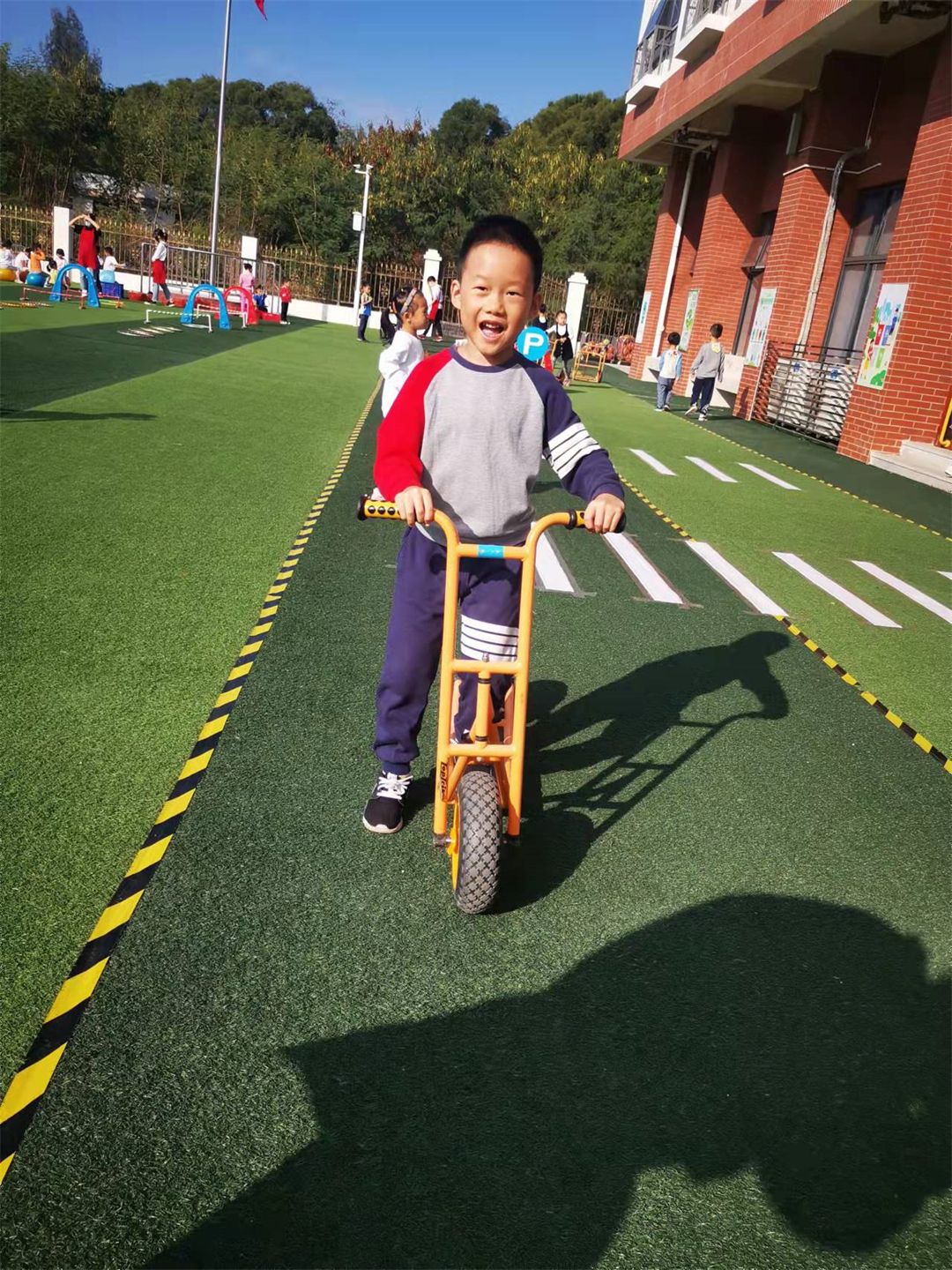 “红灯停,绿灯行”这边小小交警正认真的在执勤。骑行区孩子们也有序的遵守着交通规则,开着他们心爱的小车子,行驶在马路上。瞧,他们玩得多开心呀!