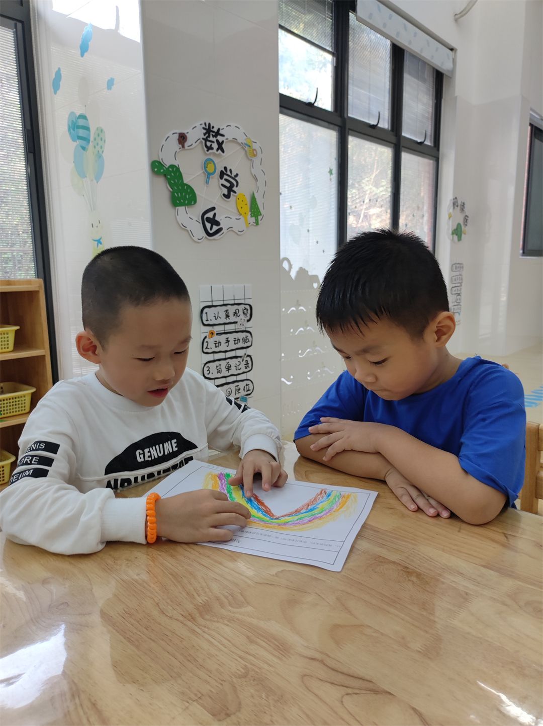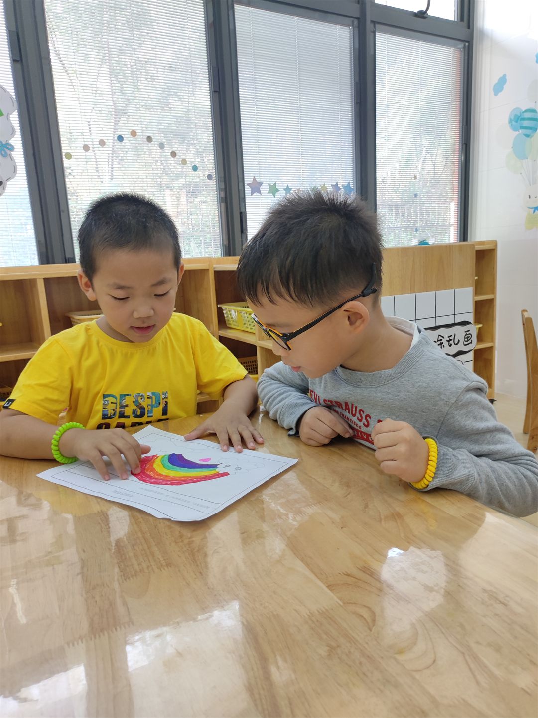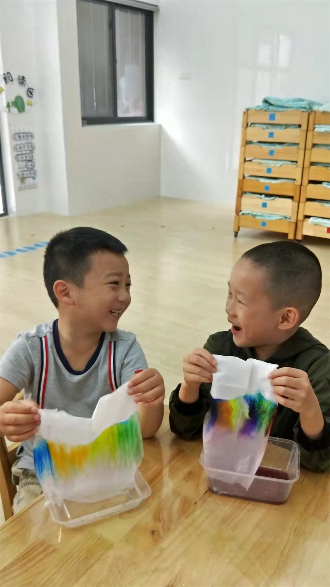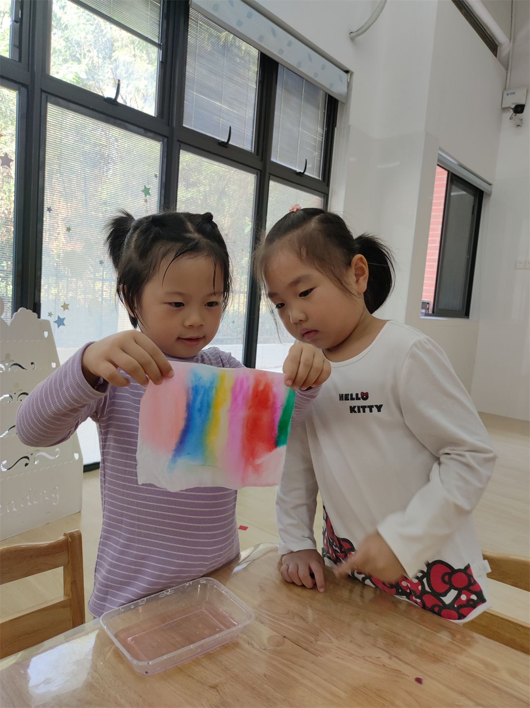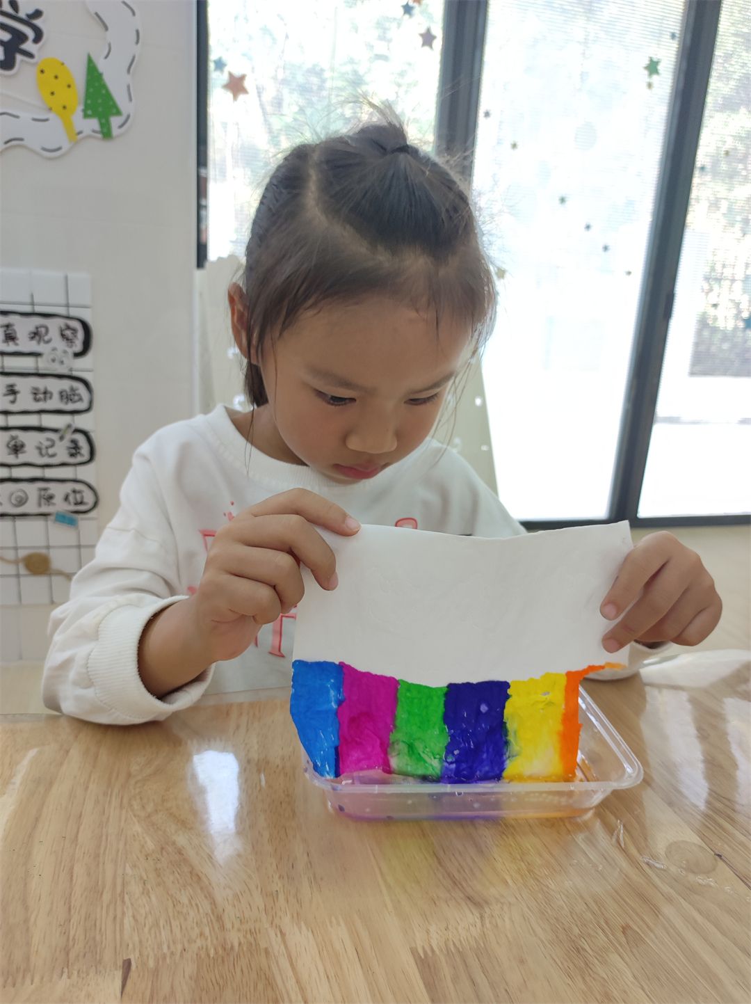 今天孩子们决定一起探究纸巾彩虹的奥秘。