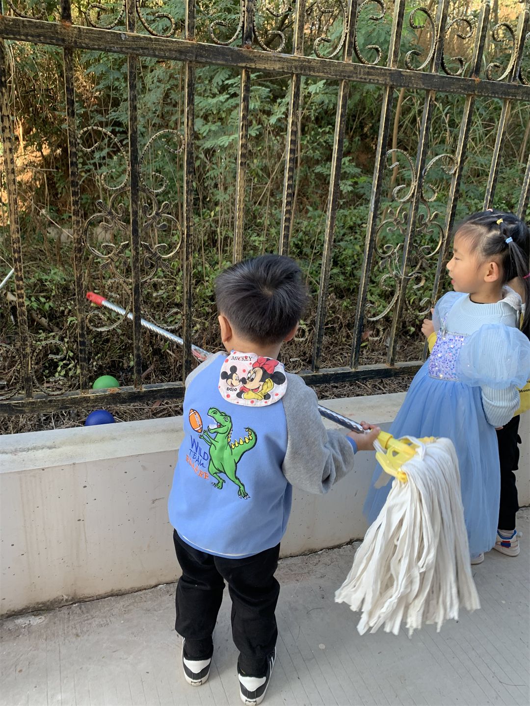 “陈老师!陈老师!阳阳和祺祺的海绵球掉到栏杆外了!”亮亮跑去找老师求助,可这时户外活动结束的音乐响起来了,老师说我们先回班级吃点心,吃完再一起来想想办法。