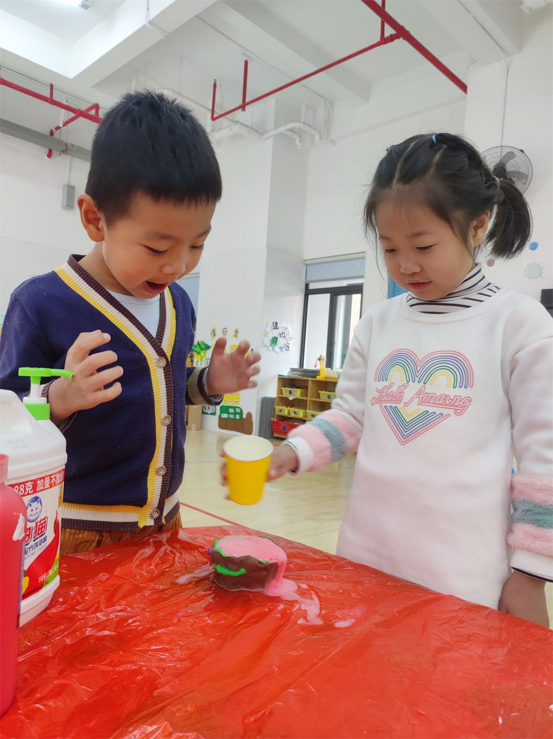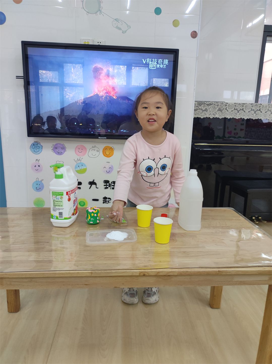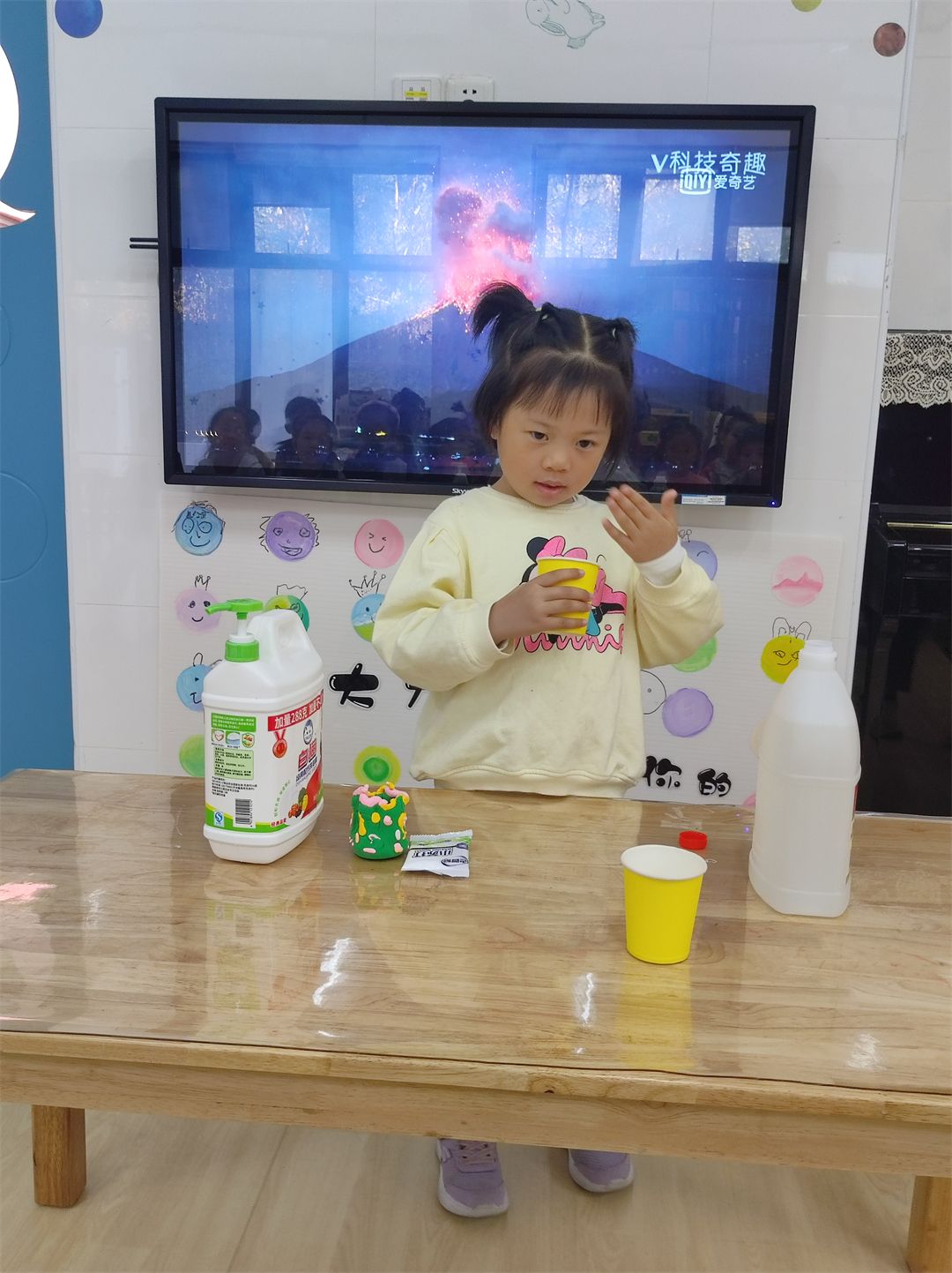 老师先用可爱的动画,幽默的语言将火山爆发的原理进行了讲解。听完老师的分享,小朋友们便蠢蠢欲动起来。
