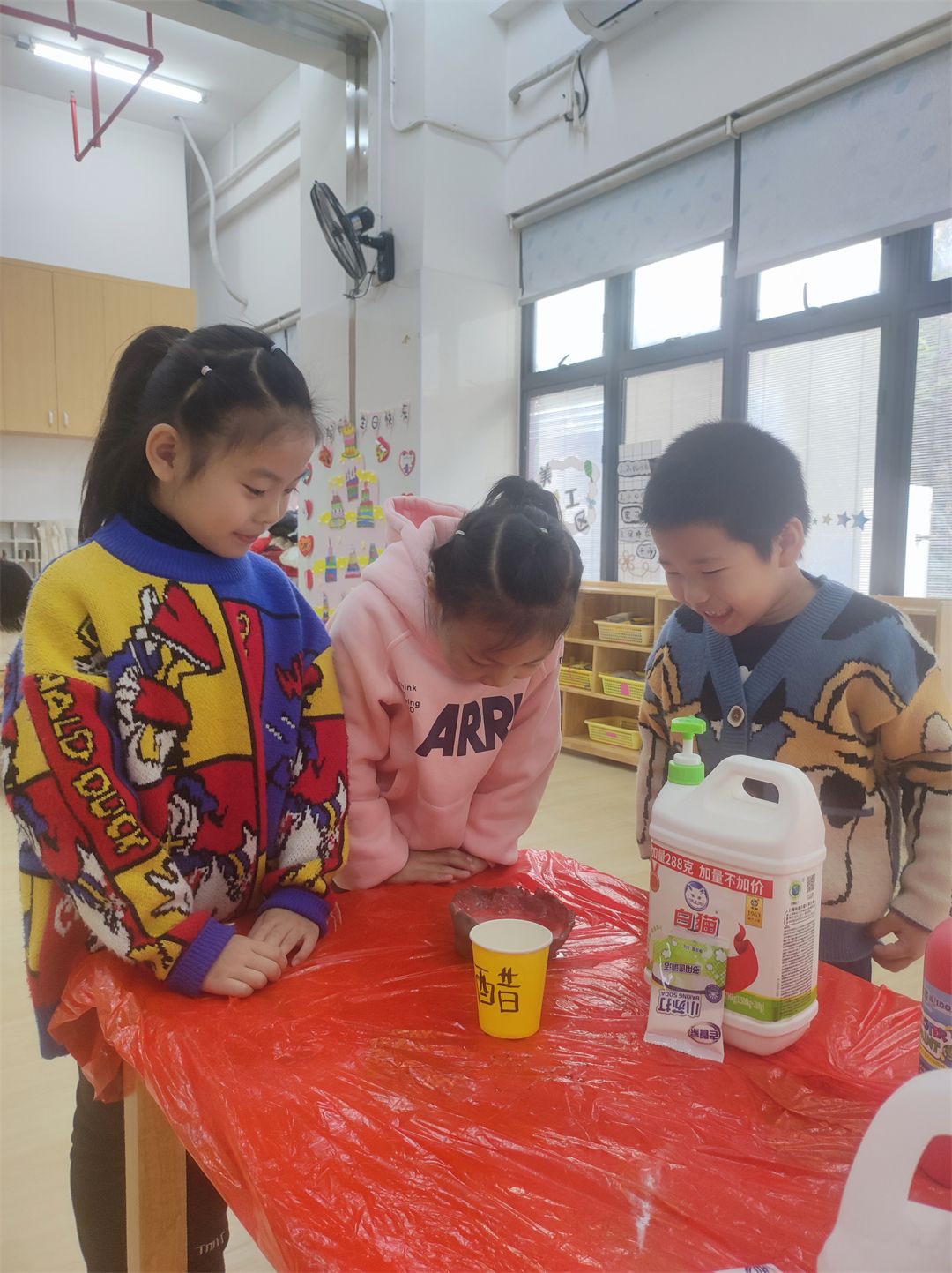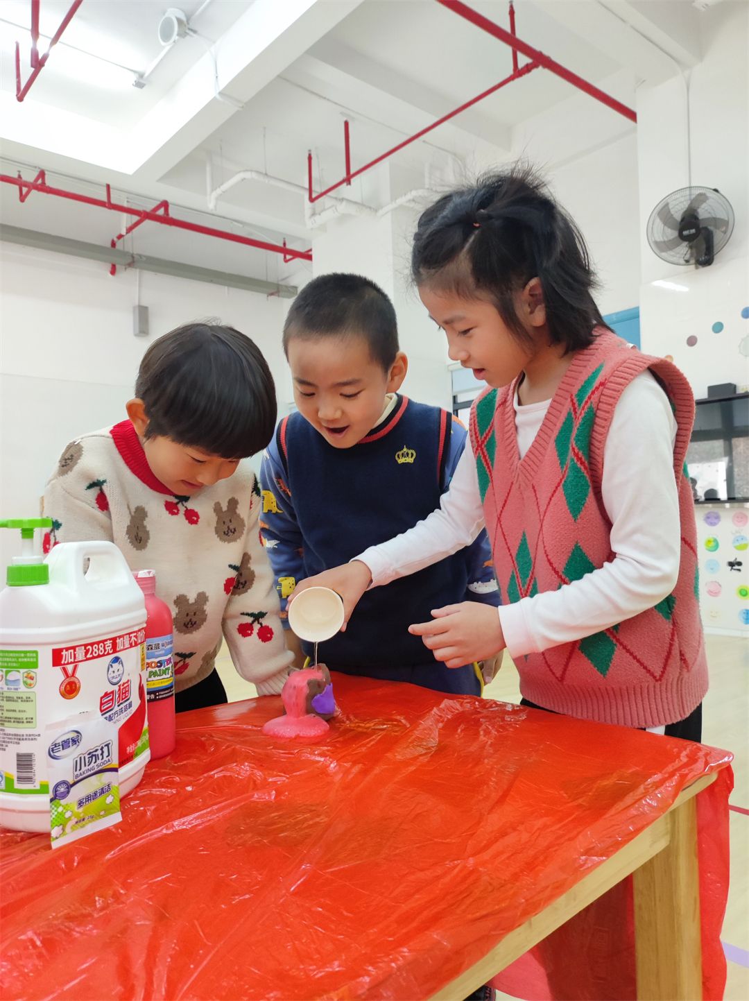 孩子对世界的认知是从好奇心开始的,强烈的好奇心会增强孩子的求知欲,激发孩子探索未知的热情。为满足孩子们爱科学、爱创新的动力,一场“火山爆发”的科学小实验活动在大九班开展,孩子们参与活动的高涨热情给这个冬天注入了无限活力。