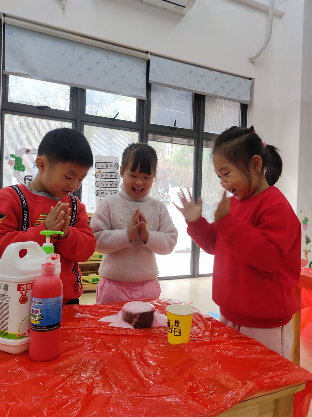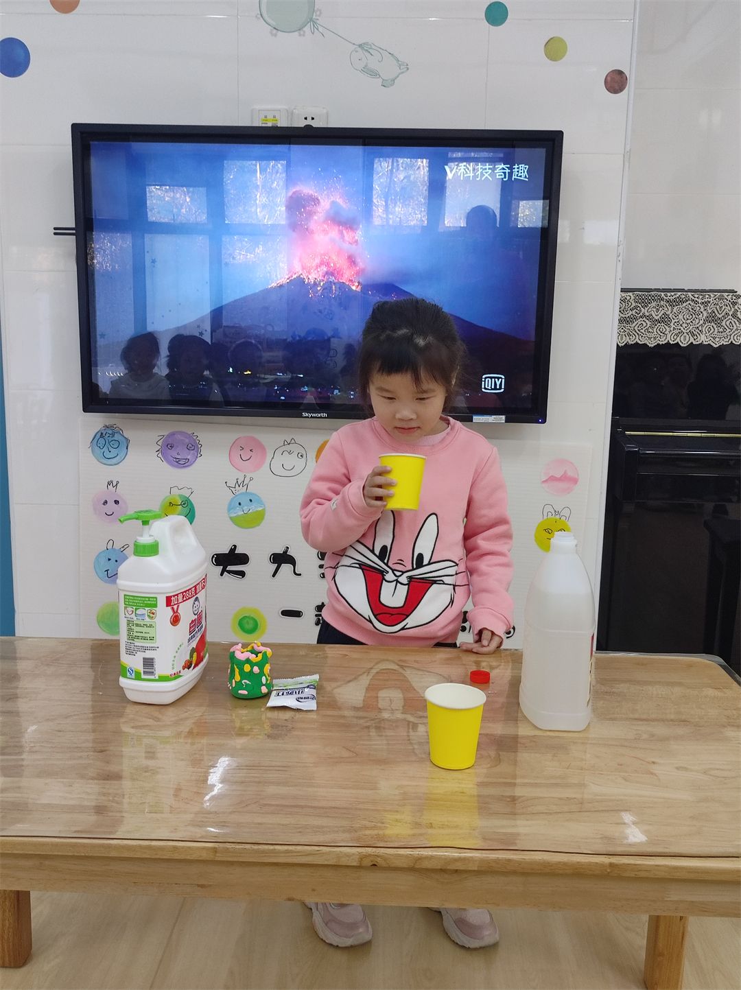 当看到“火山喷发”的时候孩子们都非常的开心和兴奋。