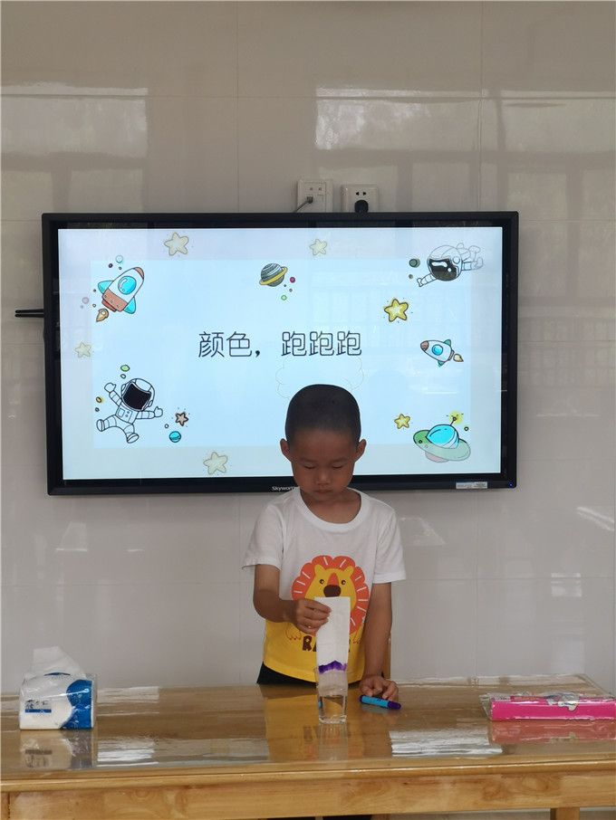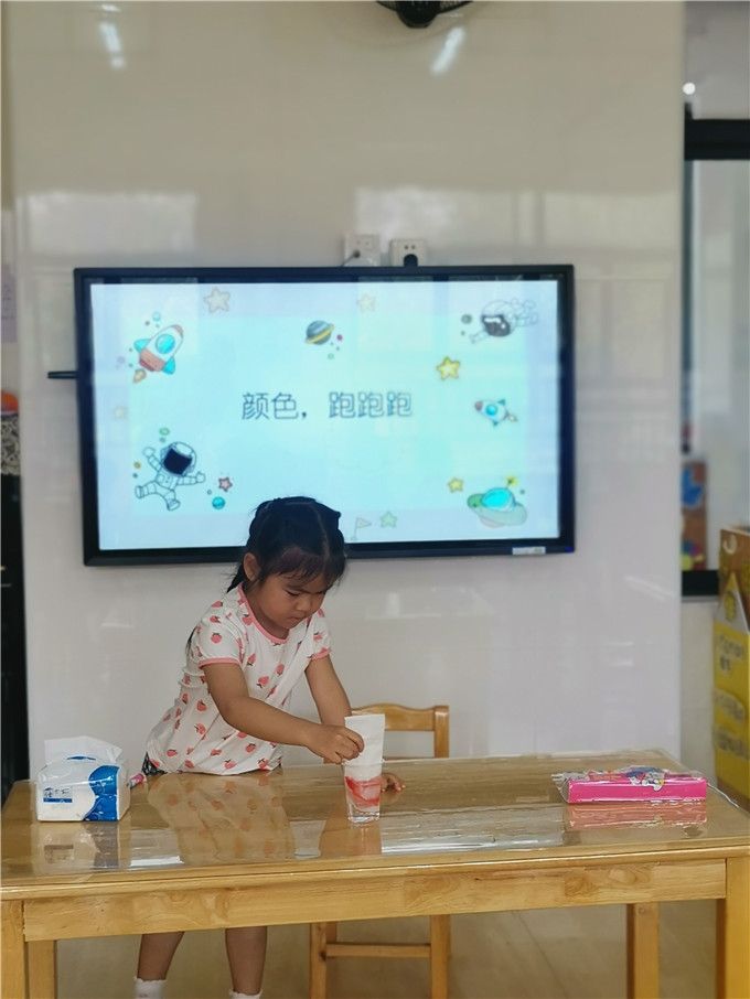 不服输的宝贝们通过再次尝试实验。所有的颜色慢慢地爬上了坡。
