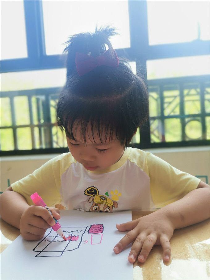 “我发现了,悦悦用水彩笔画的线被水淹没了。原原的没有。”
