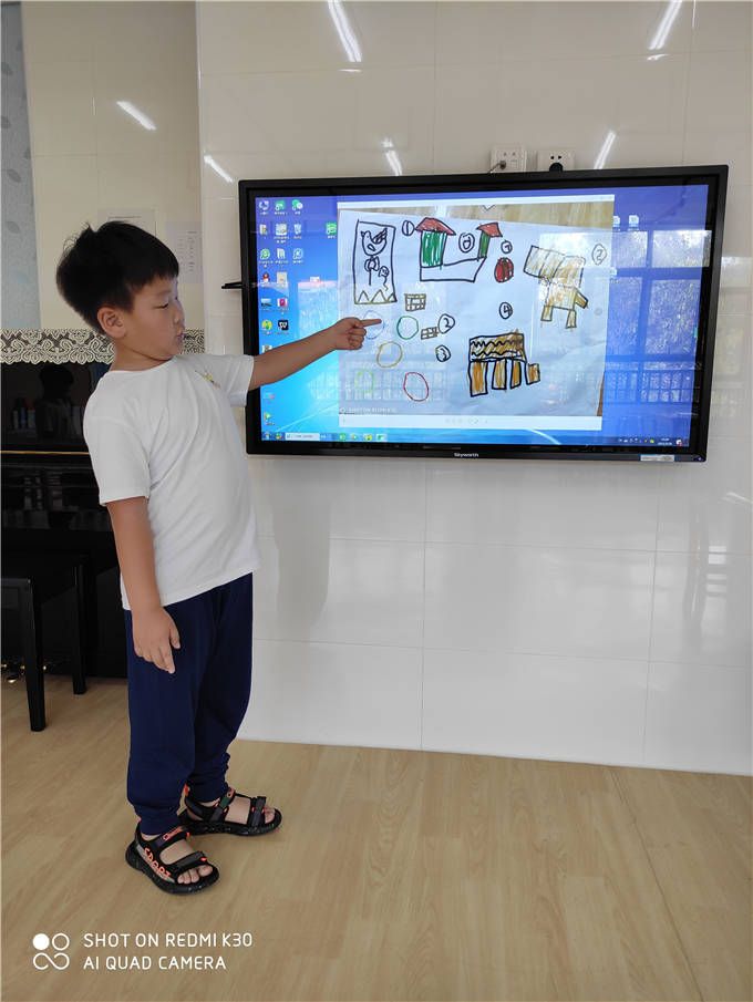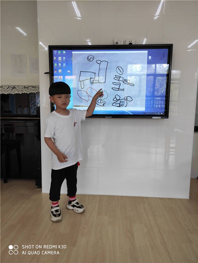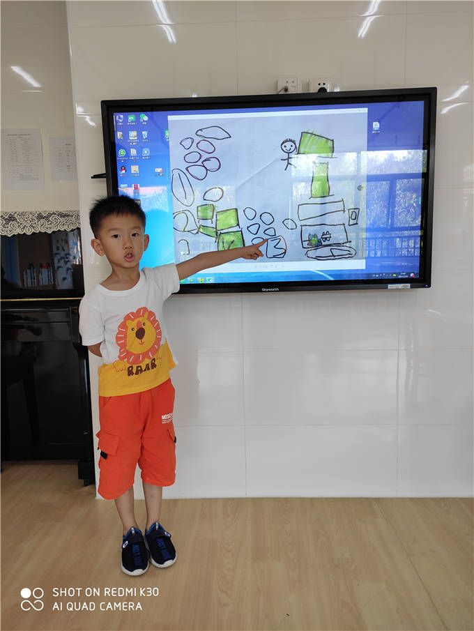 “我把地垫当成是草地,用纸芯当作炸弹,我们的目标是摧毁前方的障碍物。”敬原口若悬河的跟小伙伴们分享自己的游戏设计。