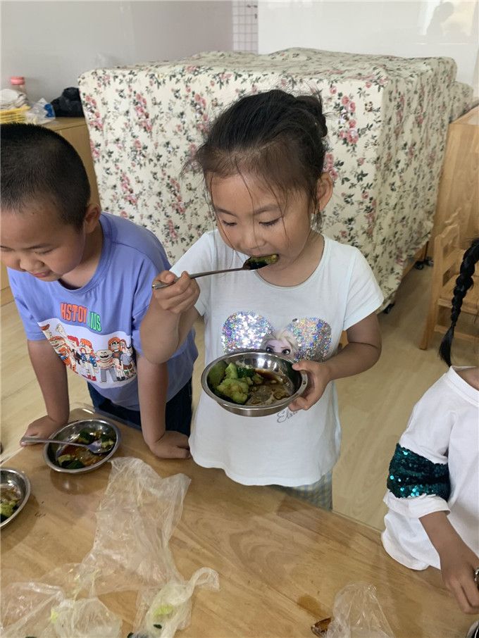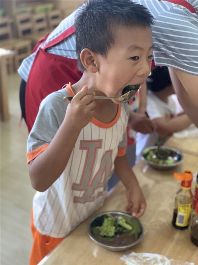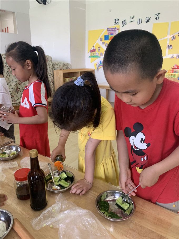 孩子们一边拍一边品尝自制“拍黄瓜”,你一口我一口,乐此不疲,快乐加倍:“太好吃了!脆脆的,香甜香甜的。”