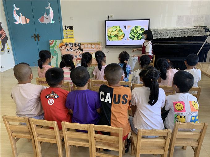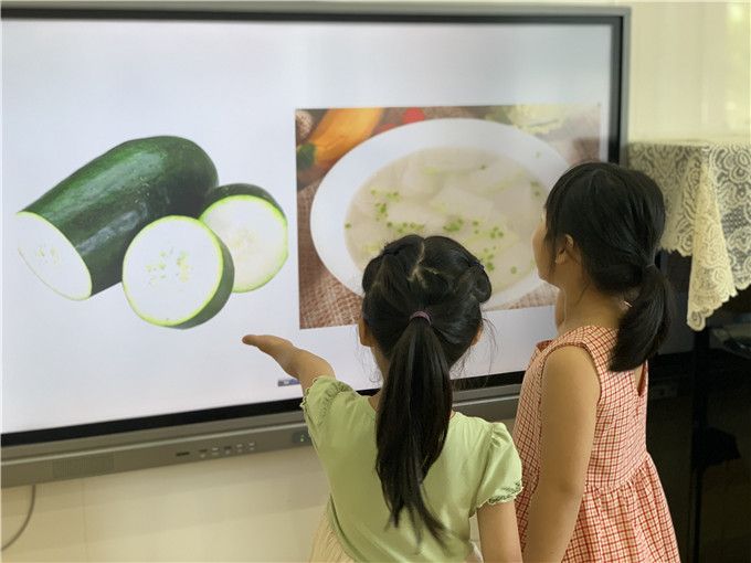 回到课堂,老师和孩子们再次认识了黄瓜的特征,更了解到原来黄瓜富有丰富的营养价值,孩子们对黄瓜的喜爱值瞬间加满。