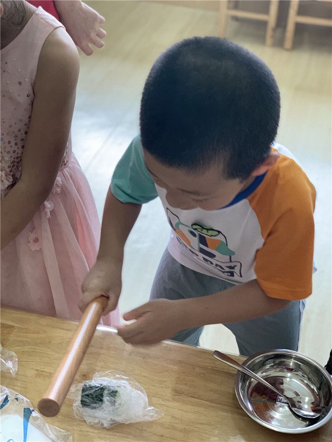 “看我的黄瓜被我拍扁了。”悦悦拿起擀面杖一敲。