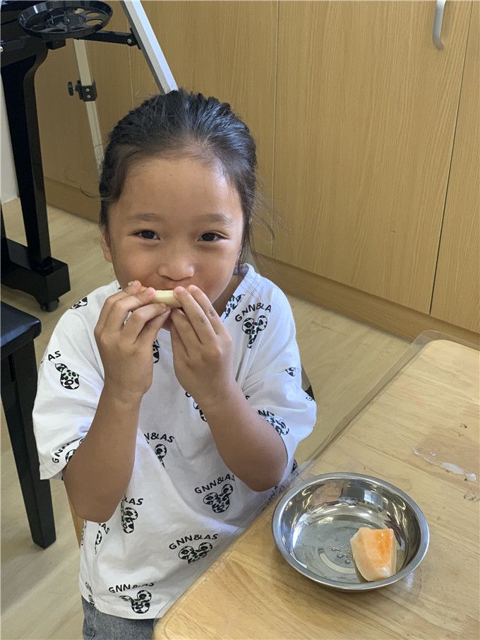 夏天还有什么“瓜”呢?孩子们认识了蔬菜中的黄瓜,你瞧,今天的水果是大大的西瓜,绿绿的皮儿,红红的瓤,“我可太喜欢夏天啦!”尽管炎热的太阳晒得脸颊通红,汗流浃背,但一到室内孩子们俨然“吃瓜”小队,捧起西瓜嘎嘣吃,立刻消除大半暑意。