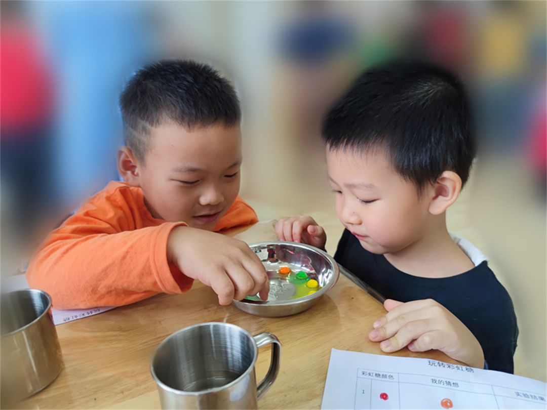 彩虹糖是小朋友们喜欢的食物之一,彩虹糖只是吃的吗?不不不,现在就跟着我们大八班的宝贝们一起来看一看彩虹糖它有什么秘密吧!