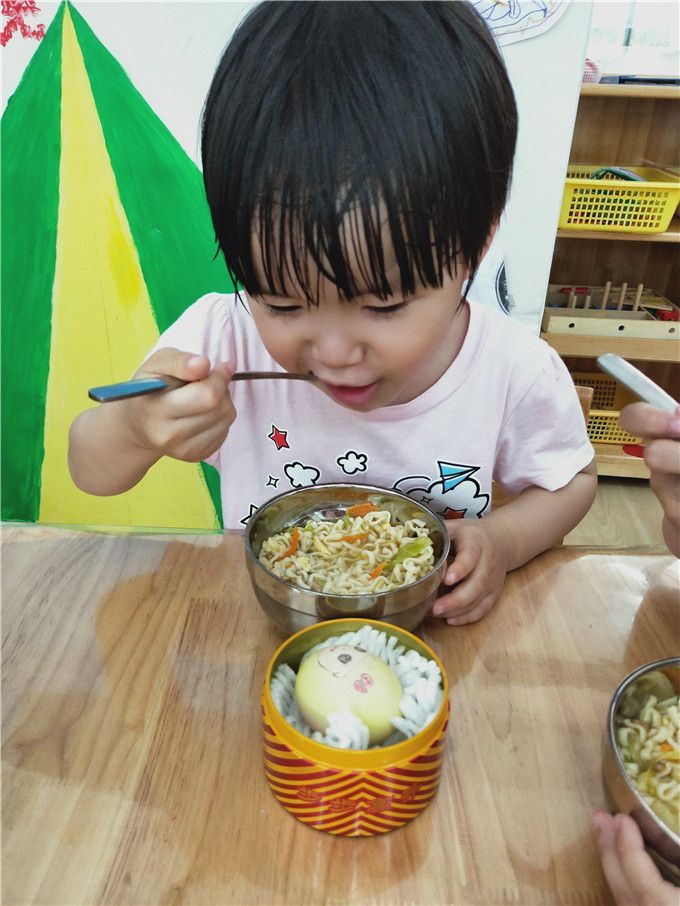 和“蛋宝宝”一起喝水、吃饭、睡觉。