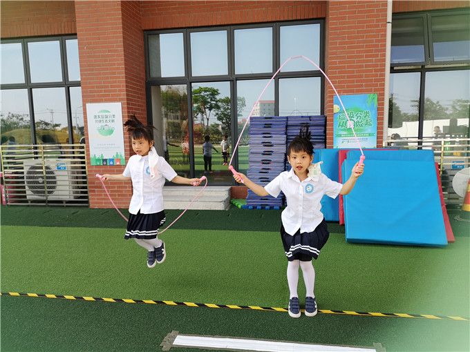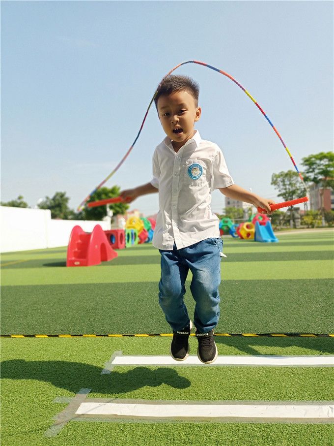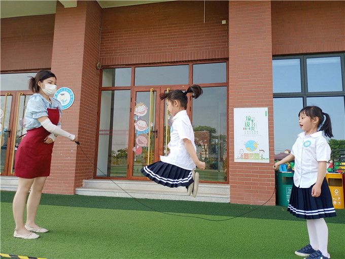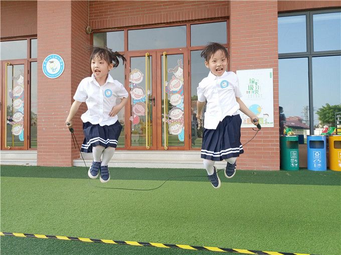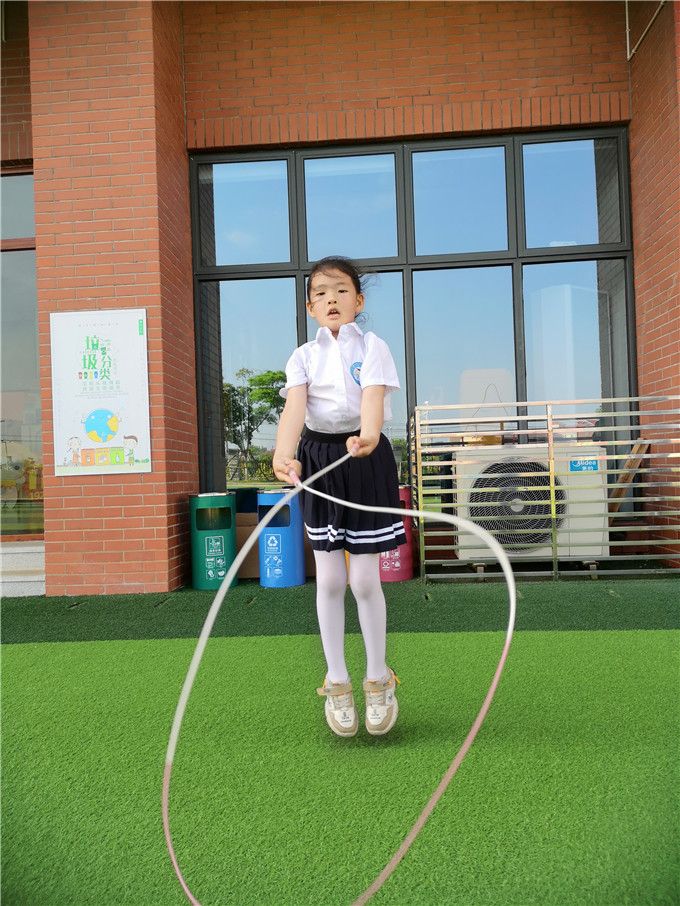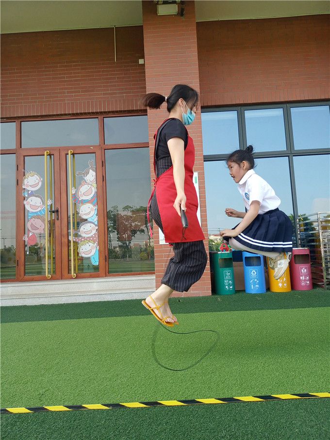 虽然没有专业跳绳选手那样高超的跳绳水平,但是我们也学了不少本领呢,单脚跳、交叉跳、双人跳、跳大绳……轮番登场,娴熟的跳绳技巧和多姿的跳绳花样让小伙伴和老师们惊叹连连!老师们也化身跳绳小健将加入到我们的比赛中,令本就精彩绝伦的赛场又增色不少,一下子把比赛的气氛给点燃了,激起了我们满满的胜负心。