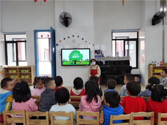 教师通过图片、动画的形式向萌娃们讲述了植树节的来源及意义,知道树木对环境的作用,初步了解树木与人类的关系。