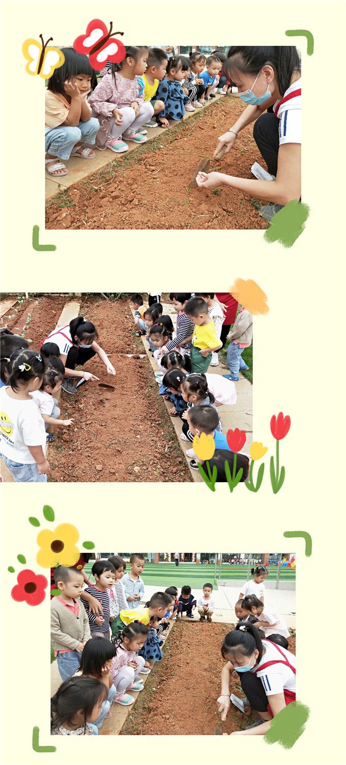 松完土,开始播种啦!宝贝们圆溜溜的大眼睛目不转睛地盯着一颗颗黑黝黝的小种子。