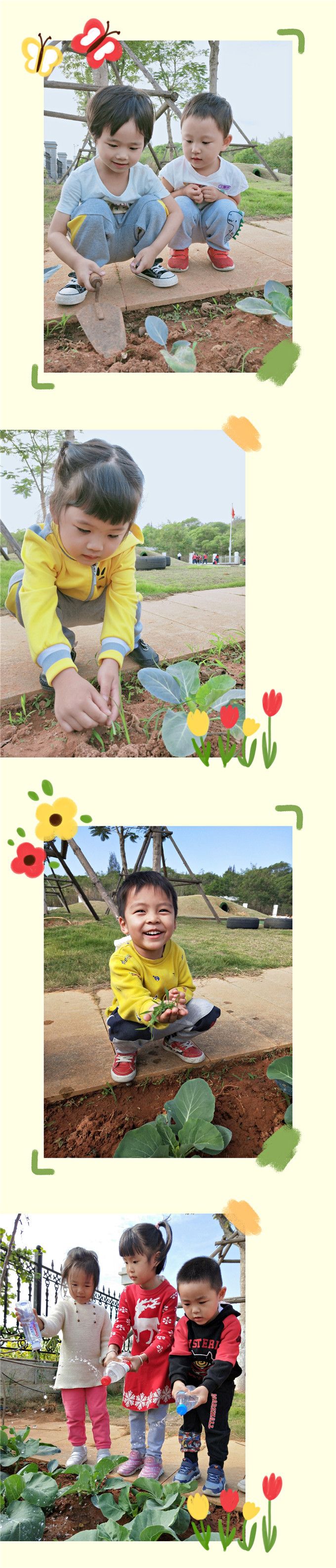 别看宝贝们个子小,一个个都可能干了!还会帮忙拔掉菜地里的野草,给小菜苗儿浇浇水呢。