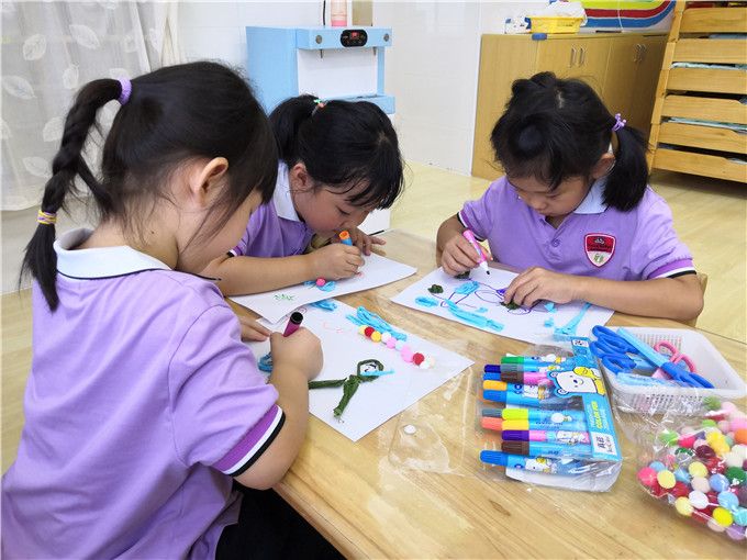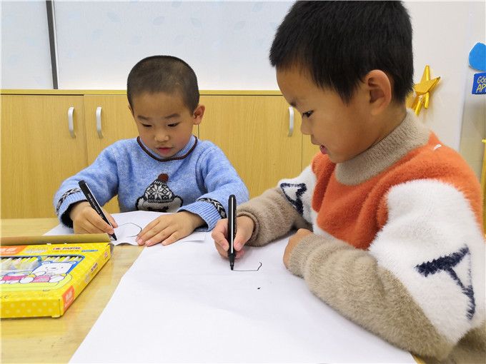 孩子们思考着喜欢的运动,一切准备就绪,现在开始创作咯!