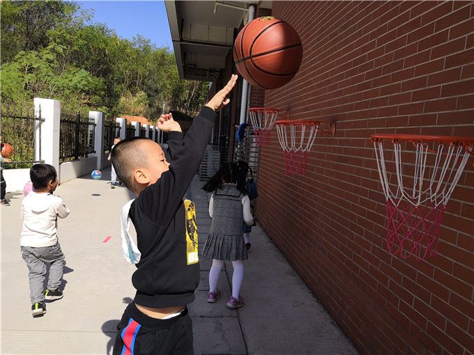 “我可喜欢打篮球了,一跳用手将篮球投进篮筐里,我已经进了8次球了,厉害吧!”