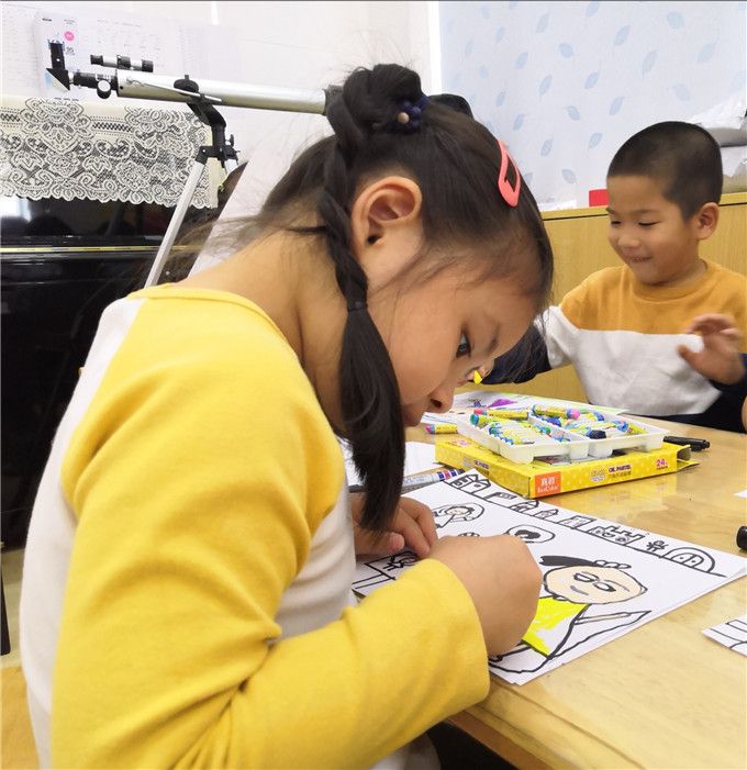 孩子们都十分认真地绘画,运动世界丰富多彩。
