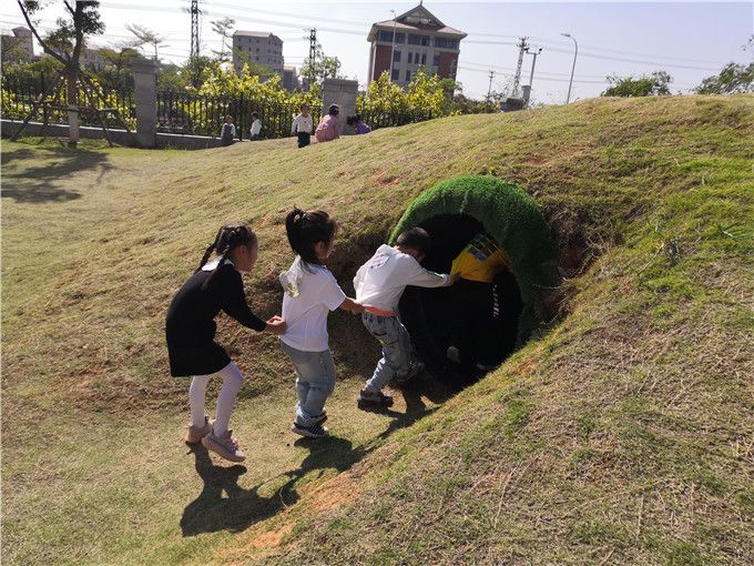 “我们的小山坡下的隧道可以玩钻洞小游戏,可好玩了!”