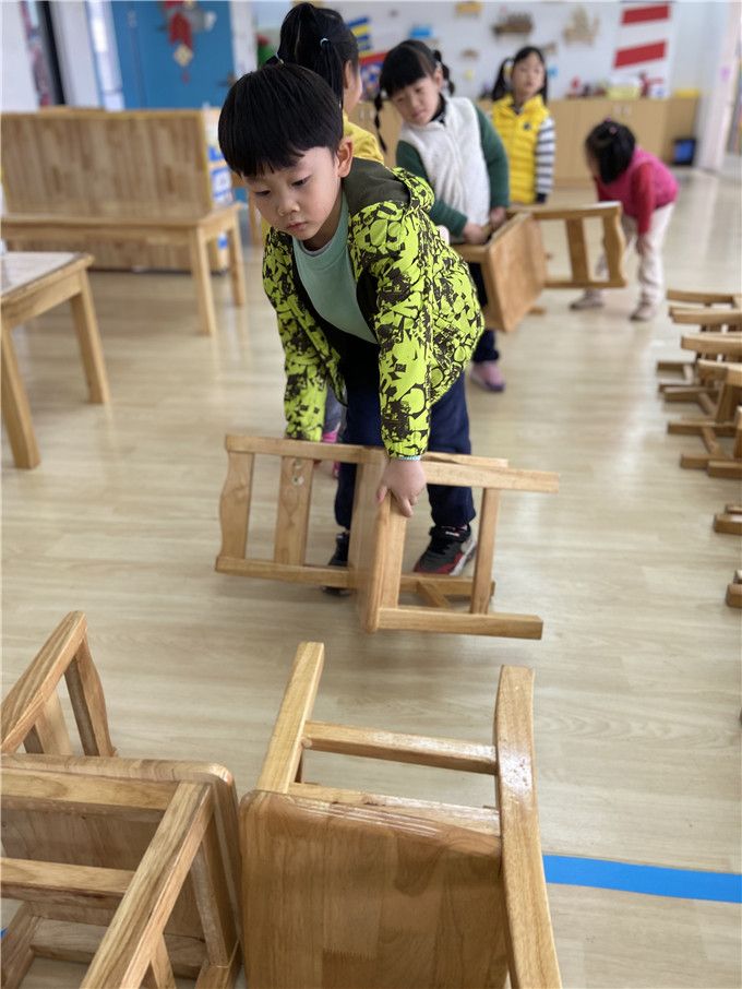 活动结束后,孩子们的脸上痛快淋漓的留着汗、淌着笑,他们一起合作整理着桌椅,共同期待着下一次的班级微运动。