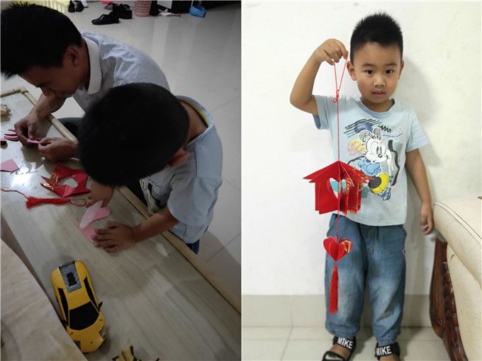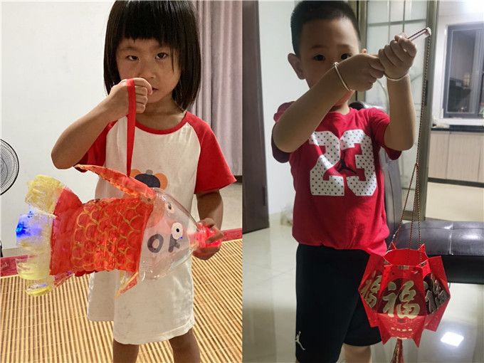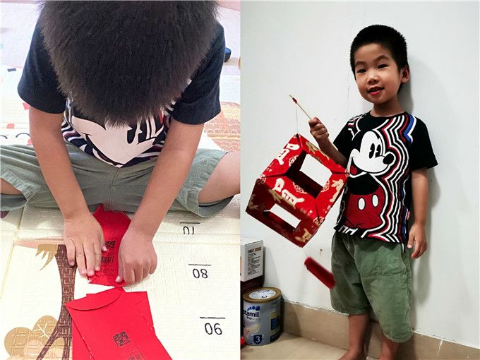 萌娃们还和爸爸妈妈在家一起变废为宝,用包装纸板、塑料瓶、旧红包袋制作了漂亮的手工作品,原来许多废旧物品还能有这么大用处呢!